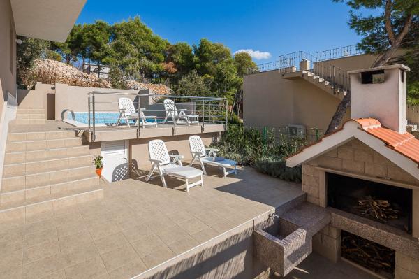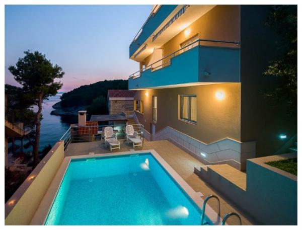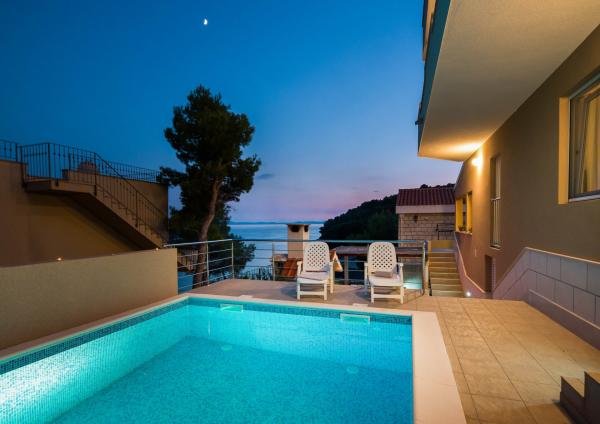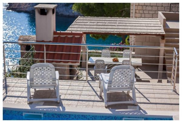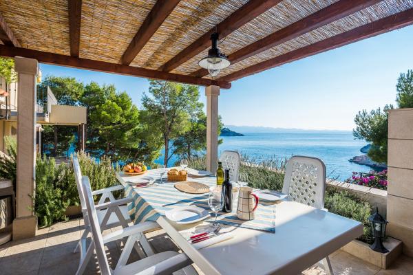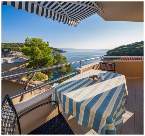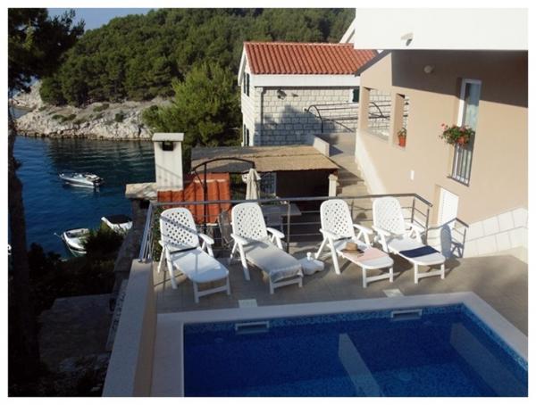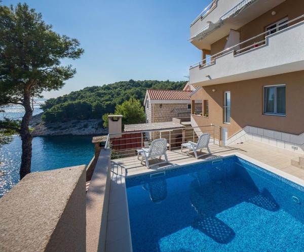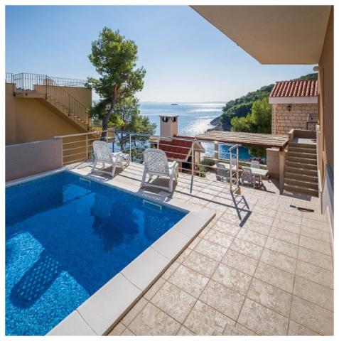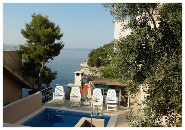 Turistična taksa je vključena v ceno.Oddaljenost od morja je približno 25 m, od mesta Milne pa 2 km. Apartmaji s pogledom na morje. Zasebna plaža in zasebno parkirišče. Velika terasa z žarom. Bazen z zunanjim tušem.