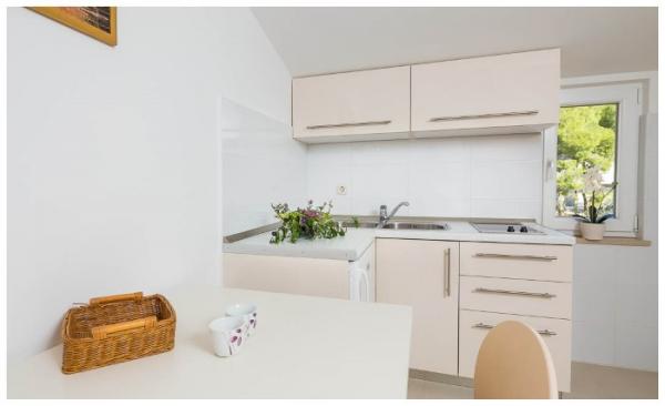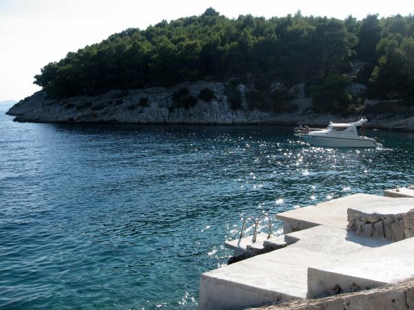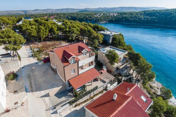Preživite počitnice v apartmaju ob morju v zalivu Osibova na otoku Braču! Apartmaji BILI se nahajajo na jugozahodni strani otoka Brača, v zalivu Osibova, ki je od mesta Milna oddaljen 2 km. Naša apartmajska hiša skupaj z vrtom zavzema površino 400 m² in je od morja oddaljena približno 25 metrov. Sama hiša je sestavljena iz pritličja, nadstropja in visoke mansarde ter ima 6 stanovanj, od tega 4 za oddajo. Gostje lahko uporabljajo žar in veliko skupno teraso s pogledom na morje. Neposredno ob hiši je parkirišče. Na vzhodni strani hiše je 23 m² velik bazen. Možna uporaba zunanjega tuša. Pod hišo je betonski blok s stopnicami. Na voljo je vsa potrebna oprema za privez gumenjakov in čolnov. Prodnate in kamnite plaže se nahajajo v notranjosti zaliva in so od apartmaja oddaljene 5 in 10 minut hoje.