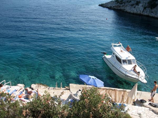 Lep zaliv s čisto vodo in zasebno plažo, kjer boste lahko uživali v miru. Stanovanje je popolnoma, kot je prikazano, čista in opremljena z vsem, kar potrebujete na dopustu. Še posebej poudariti, da me bistveno zunanji tuš in žar z dodatnimi sobami. Gostitelji (cela družina), se zavzema za njegovo delo, vedno na uslugo. Absolutna priporočilo za tiste, ki resnično želijo odpočiti od vsakdanjega stresa in gneče med letom.