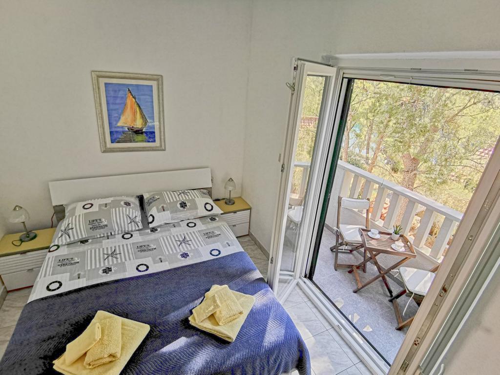 Dva apartmaja moderno opremljeni in klimatizirani, ki se nahaja v lepem borovem gozdovi, zalivi smiještenena na jugozahodu otoka, na 30 m od morja, ki je prav tako in plaža. Apartmaji so sestavljeni iz kuhinje, dnevna soba, spalnica in kopalnica. Vsak apartma ima lastno teraso in parkirni prostor. Najbližje mesto Milna, ki se nahaja na 1500m razdalji, torej 15 min hoje.