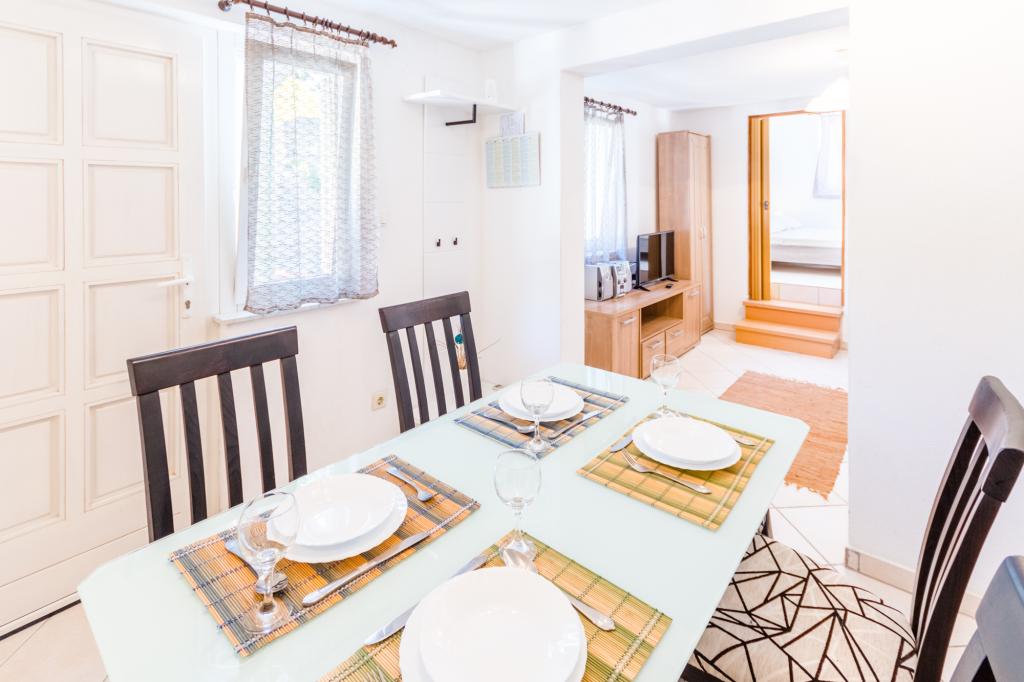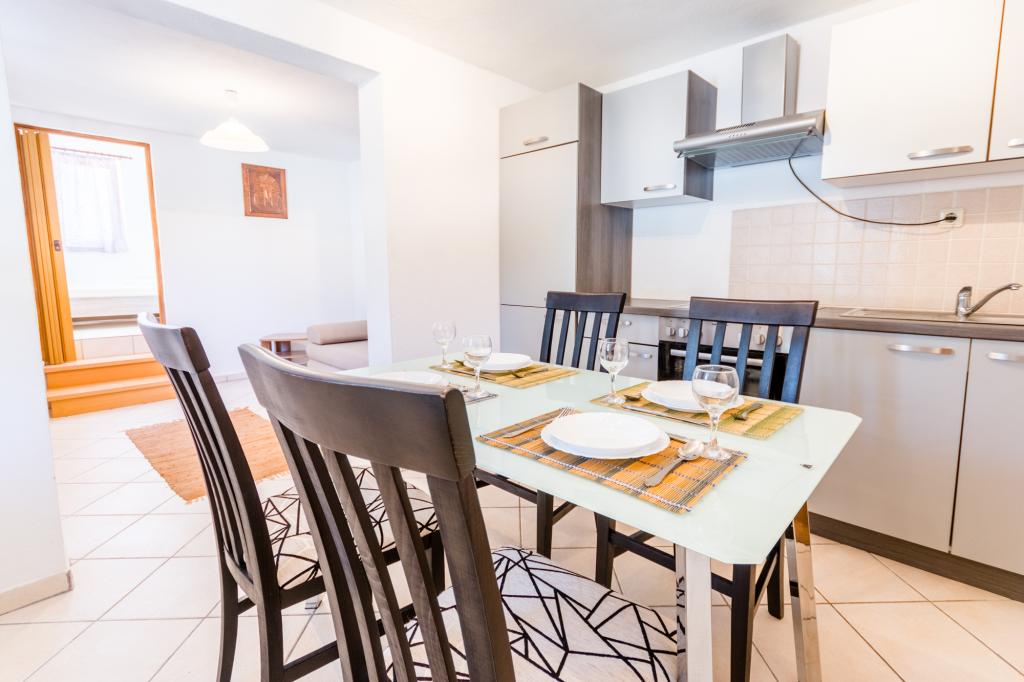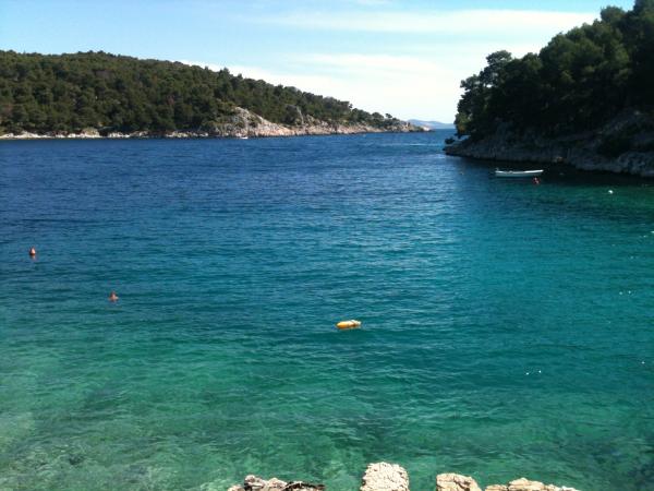 Vila Klara se nahaja v mirnem zalivu, le minuto hoje od plaže, ki je bila v vrhuncu sezone napol prazna in ste lahko našli mesto v senci na skalah. Zaliv za otroke je majhen, vendar dovolj velik za kopanje, ker ni veliko ljudi, kar je bilo odlično za našo enajstmesečno punčko. Stanovanje je popolnoma opremljeno in izjemno čisto in urejeno, kar je bilo z majhno plazilko zelo pomembno. Pred apartmajem je označeno parkirno mesto, zato ne skrbite, da bi iskali parkirišče. Najbolj nas je navdušil prijazen gostitelj, ki nam je ob prihodu vse razložil in vam bil na voljo za vsa vprašanja in pomisleke. Vsekakor bi to stanovanje priporočili vsem, ki si želijo miru, tišine in kristalno čistega morja.