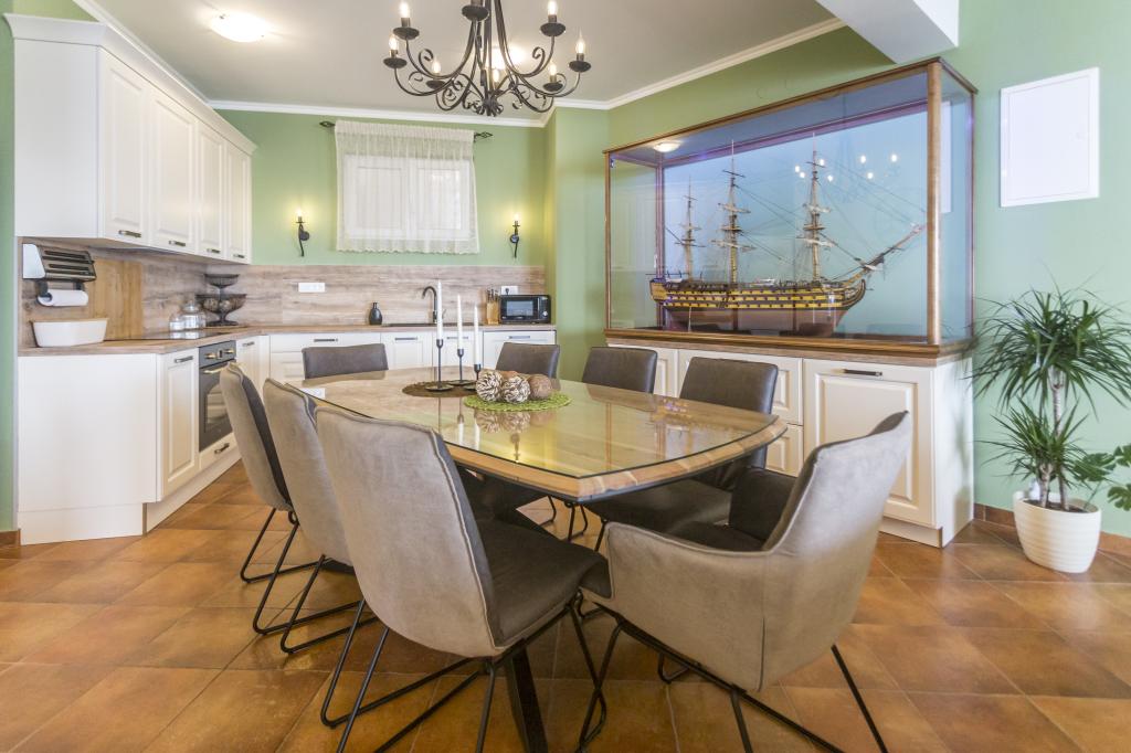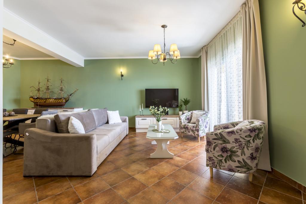 Apartma VICTORY se nahaja v samostojni vili v bližini mirne vasi Mimice s čudovitim razgledom na morje spredaj in čudovito gorsko naravo za vilo. Idealen prostor in lokacija za družine, ki želijo pobegniti od gneče in hrupa turističnih območij. Lokalne plaže so oddaljene le 10 minut hoje, vključno z restavracijami, bari na plaži in lokalno tržnico. Apartma je luksuzno opremljen s povsem novim pohištvom in vso potrebno opremo. Velikost apartmaja je 120 m², sprejme največ 8 gostov in je sestavljen iz: *Tri (3) spalnice, opremljene s klimatsko napravo in novim pohištvom. *Dve (2) kopalnici z WC-jem in pralnim strojem. *Velika jedilnica (za 8 oseb) z novo kuhinjo, opremljeno z vso potrebno posodo. *Velika dnevna soba z velikim kavčem in dvema naslanjačema. *Velik balkon (20 m²) s čudovitim razgledom na morje in jedilno mizo za 8 oseb. Apartma je opremljen z velikim satelitskim 55-palčnim pametnim LED televizorjem in avdio sistemom s klimatsko napravo.