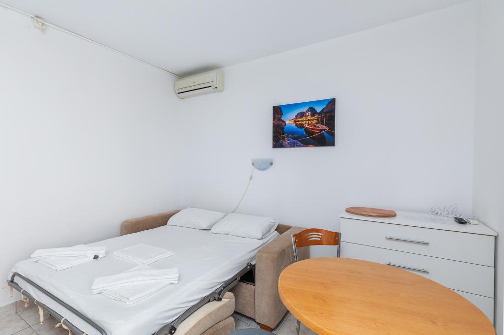 Dobrodošli v Apartmajih Bosiljka v Medića – majhni dalmatinski oazi miru med Omišem in Makarsko. Le 50 metrov od prodnatih plaž in kristalno čistega morja vas bodo pozdravili gostitelji, ki sprejemajo goste kot svoje. Zaseben dostop do morja in brezplačno parkirišče ob hiši poskrbita za brezskrbne počitnice od prve minute. Na terasah in balkonih se širi vonj po morju in borovcih, pogled pa se izgublja v modrini. Dovolj je, da prinesete dobro knjigo… in nasmeh. Lokacija je popolno izhodišče za izlete: Omiš (15–20 min), Split in Trogir za kulturo in sprehode po ozkih ulicah, Makarska za živahen sprehod ob obali, reka Cetina za rafting in Biokovo Skywalk za razglede, ki jemljejo dih. V bližini so trgovina, pošta, stojnice s sadjem, restavracije in kavarne – vse »na doseg sandal«. Če iščete mir, čisto morje in pristno gostoljubnost, ste na pravem mestu. Rezervirajte svoj termin in pridite po odmerek dalmatinskega pomalo – za ostalo bomo poskrbeli mi.