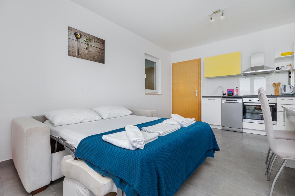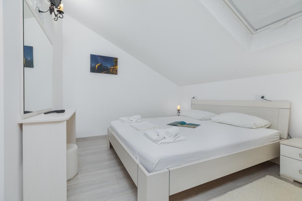 Pohvaliti želim namestitev - Apartmaje Bosiljka, ker je gostitelj odličen, namestitev pa urejena in čista. Plaža je v hoje oddaljena, morje pa je popolno. Idealno za družine z otroki, brez vrveža. Že dolgo nismo srečali bolj ustrežljivega gostitelja kot je Frane.