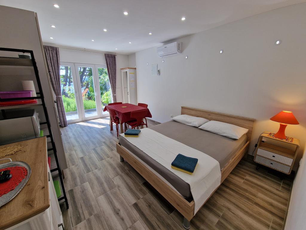 Le 50 m od čudovite prodnate plaže, prva vrsta ob morju. A1- (51640) Apartma lahko sprejme 6 gostov. Postelje so razporejene v 3 spalnicah, znotraj 56 m2. Terasa velikosti 18 m2. Pogled na morje iz 350 m2 velikega gozda. Dve kopalnici. Žar je skupen. V kuhinji je pomivalni stroj. A2- (51641) Apartma lahko sprejme 5 gostov. Postelje so razporejene v 2 spalnicah in jedilnici, znotraj 73 m2. Balkon velikosti 17 m2 s pogledom na morje. Žar je skupen. V apartmaju sta pralni in pomivalni stroj. A3- (64424) Apartma ima 2 postelji v dnevni sobi s kuhinjo in 2 v spalnici. Dnevna soba s kuhinjo meri 22 m2, spalnica 7 m2, kopalnica 5 m2. V kuhinji je pomivalni stroj. Žar je skupen. Velika terasa (35 m2) s pogledom na morje.