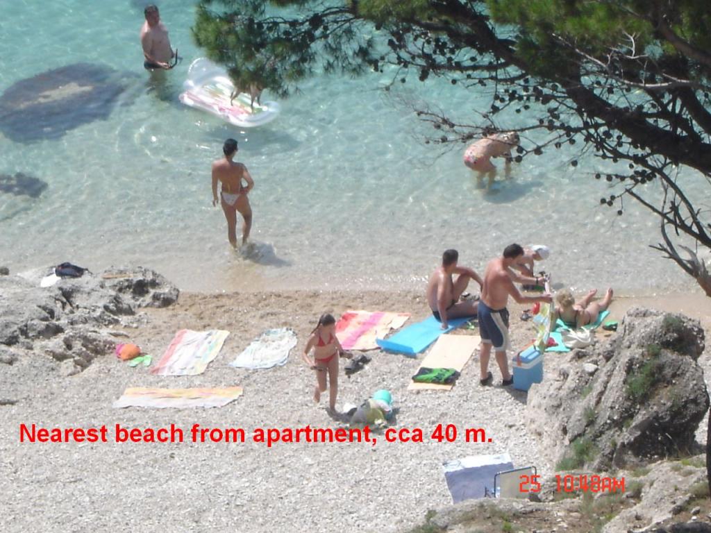 Super! Lepo doma, lepo lastnik kot bonus za moške. Čiščenje apartmaja s potrebno opremo. Mirna Z izjemo škržatov. Zasebna plaža idealna za družine z otroki. Ostale tri plaže čista in nepreľudnené v neposredni bližini. Trgovina, restavracija z veliko cene - kosilo od 40 kN, 50 kn pico. Odličen sladoled Mimico. Za ljubitelje turizma Omiša in Baški Vodi. Predlagam, da se spet naslednje leto. Goodbye