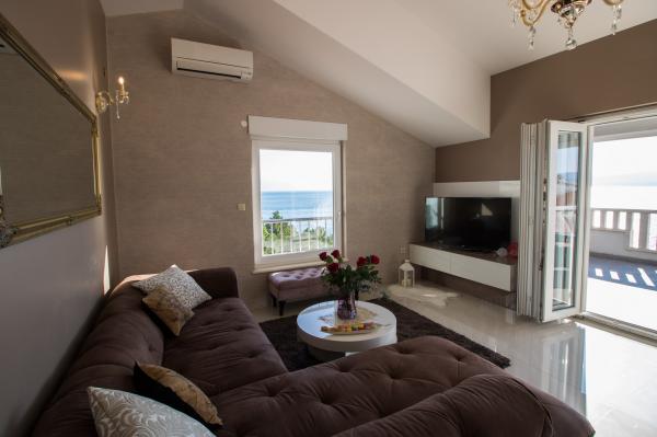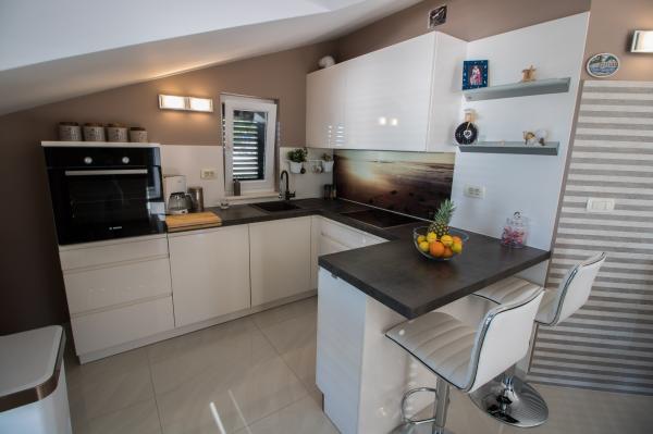 Apartma je super, čist, stvari so lepo negovane. Opremljen je z veliko stvarmi, ki jih na slikah ni (veliki hladilnik,pralni stroj,..). Apartma je top, razgled pa fantastičen. Plaža je malo majhna ter oddaljena manj kot 5 min po stopnicah. Manjka edino lepa sprehajalna pot ob morju - potka je ampak je plezalna med skalami. Poseben poudarek bi dala na lastnika, ki pa sta čudovita. Zelo dobri, topli osebi, ki sta vedno pripravljena na pomoč. Vedno sta nasmejana in z dobro voljo poskrbita za res čudovito izkušnjo :) Res poskrbita, da se vsi pri njima počutijo dobrodošli in sprejeti. Vse pohvale. Naša izkušnja je bila čudovita. Priporočamo!