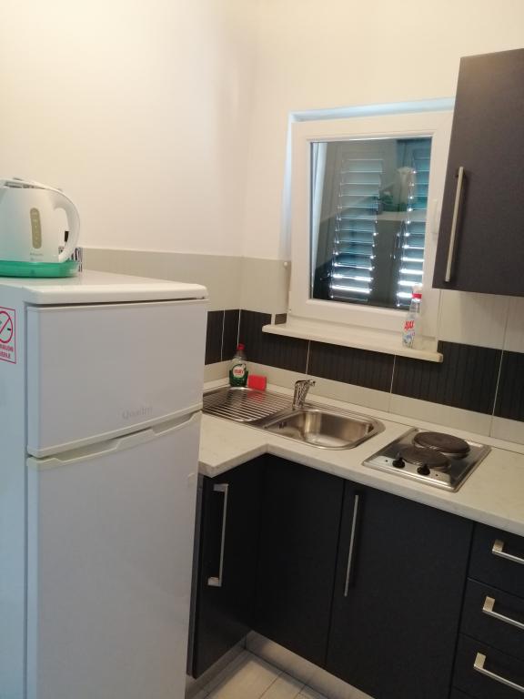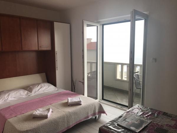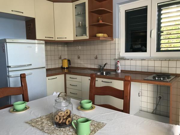 Stanovanje v bližini morja okoli 50 metrov po stopnicah, neposredno, brez prehoda čez cesto, prodnata plaža, čisto, urejeno, dokaj velika privatna. Apartma je sestavljen iz spalnice z zakonsko posteljo in manjši del kuchenno jedilnico, kjer je kavč za 2 osebi. Poleg tega je terasa z delnim pogledom na morje. Kuhinja je opremljena z osnovnimi bistvenih kuhanje, lepo veliko kopalnico. Zelo lepo gostitelji, bi priporočal, za tiste, ki iščejo mir, kot nalašč za tiste, ki imajo otroke.