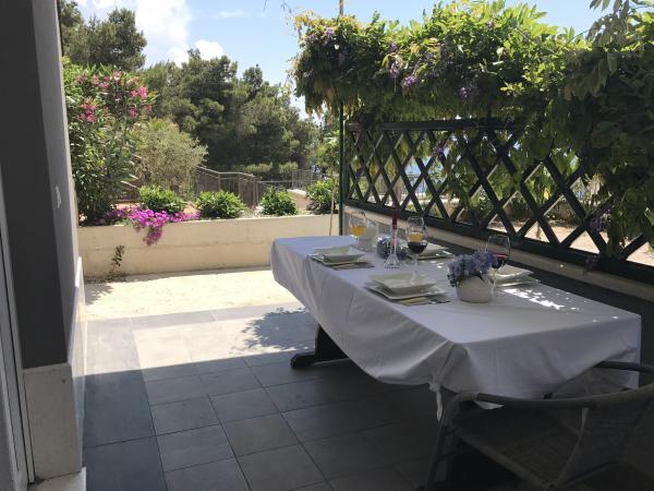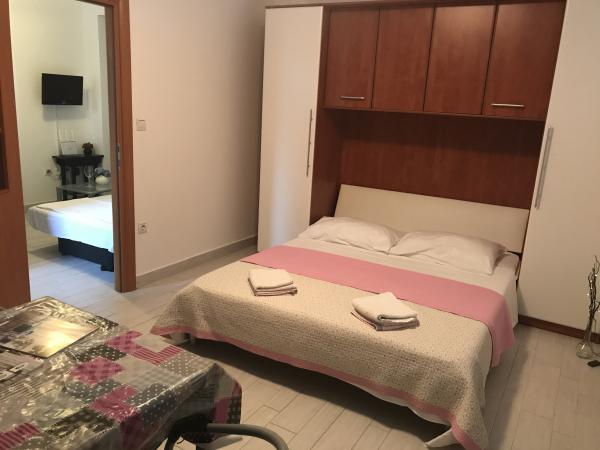 Odlična namestitev. Bili smo v apartmaju z dvema sobama in dvema zakonskima posteljama, ki ima majhno kuhinjo z vsem, kar potrebujete za hitro pripravo obrokov... Brezplačno parkiranje... Ljubki lastniki.. Namestitev je v bistvu na plaži in je otrokom prijazna.. .To je prijeten majhen kraj, miren in popoln za počitnice z majhnimi otroki.. Malo je majhnih in intimnih plaž, ni gneče, ni glasne glasbe, samo mir in tišina... veliko naravne sence.. V bližini je beach bar in restavracija.. Vsekakor priporočam in bi šla še enkrat.