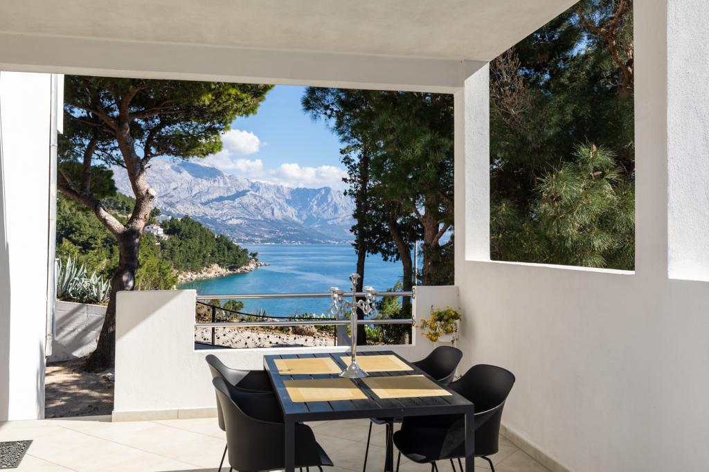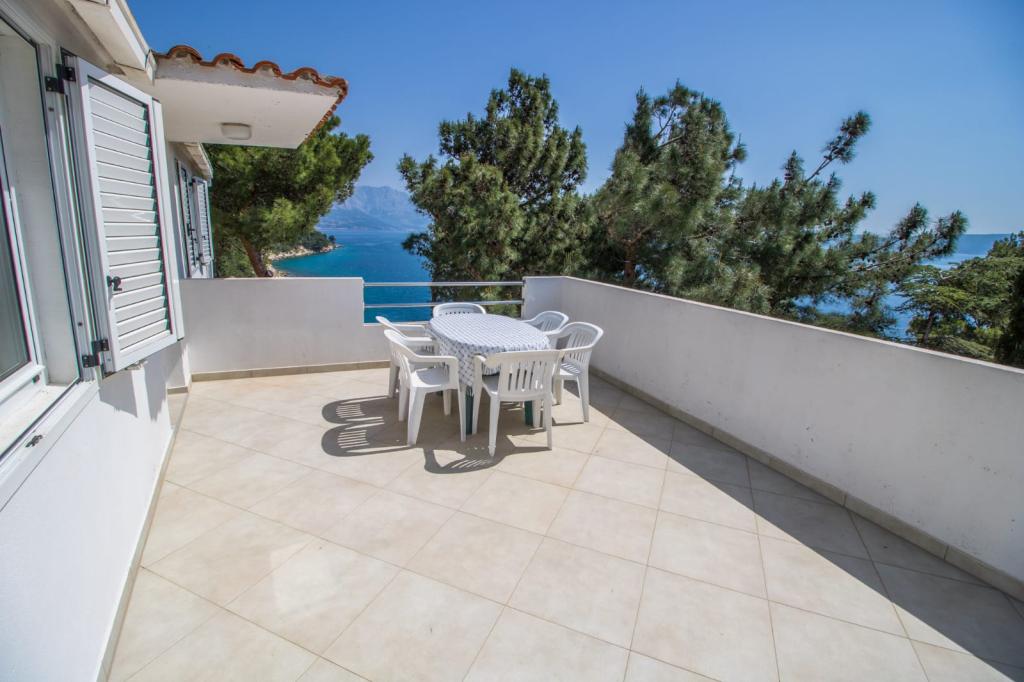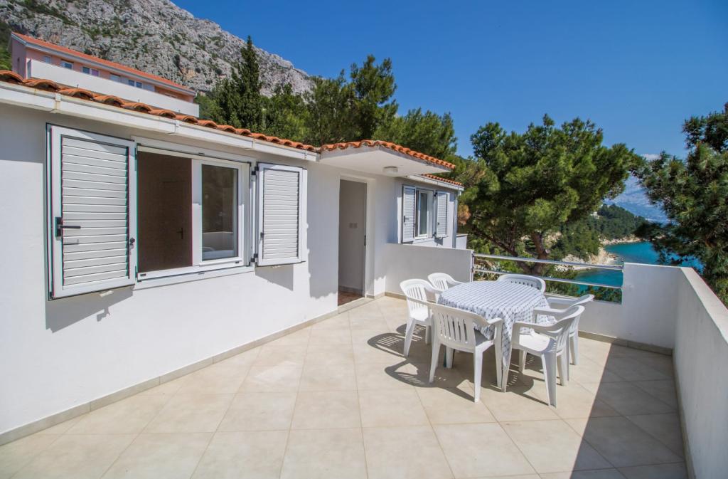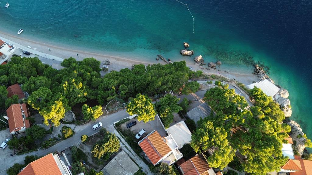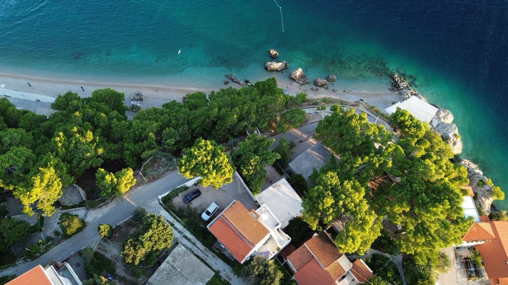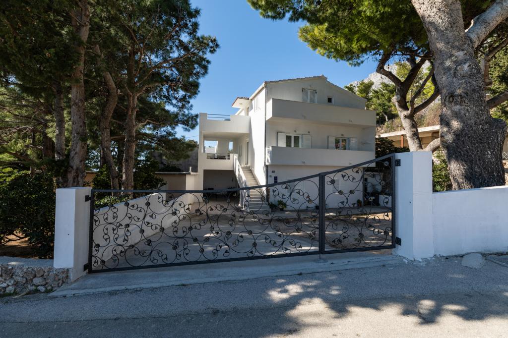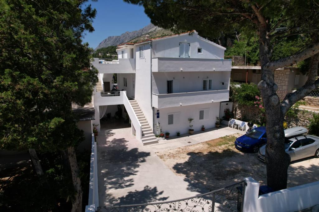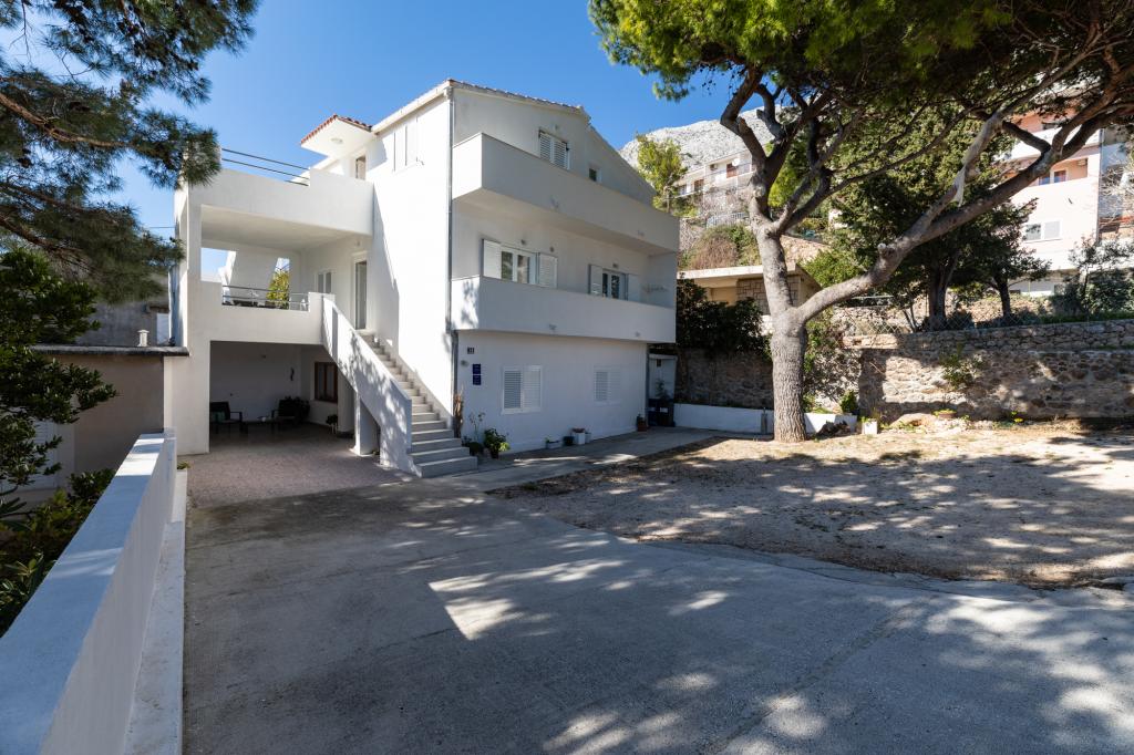 Hiša vsebuje tri stanovanja. Vsak apartma ima ločen vhod, velike terase in balkone s pogledom na morje in planino Biokovo. Do plaže je dve minuti hoje. Hiša ima veliko parkirno mesto pred hišo. Dobrodošli