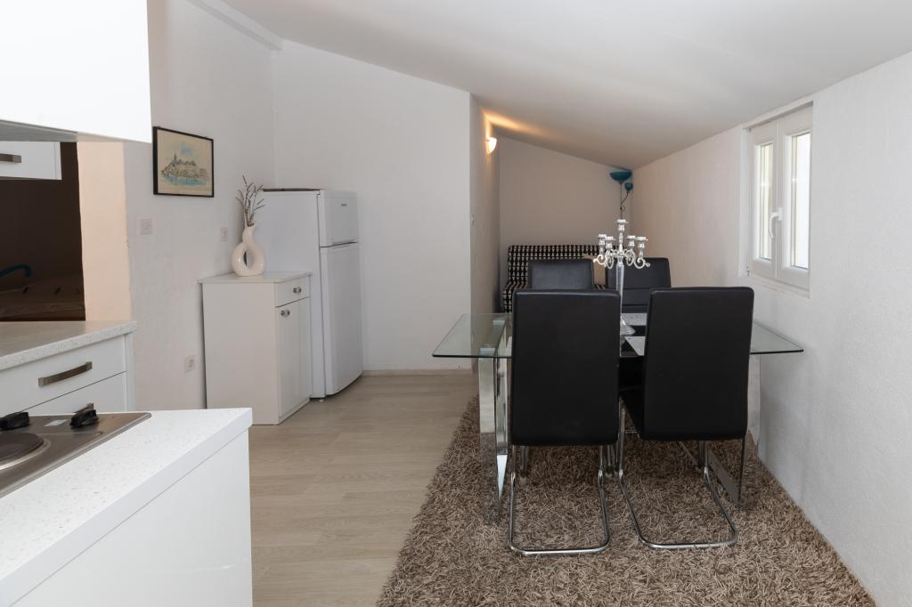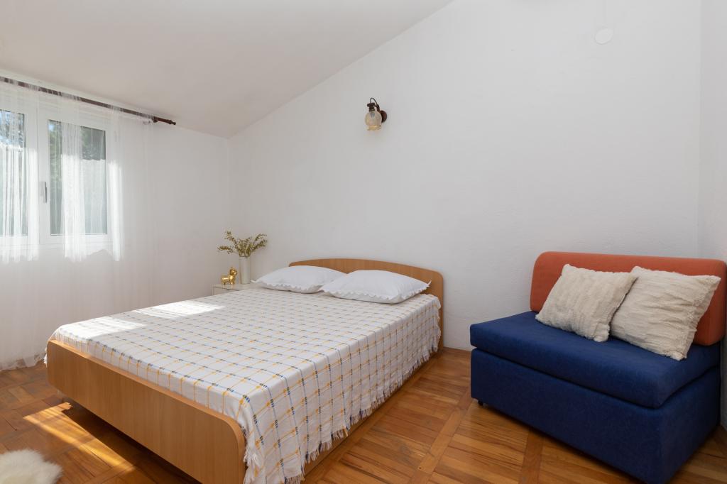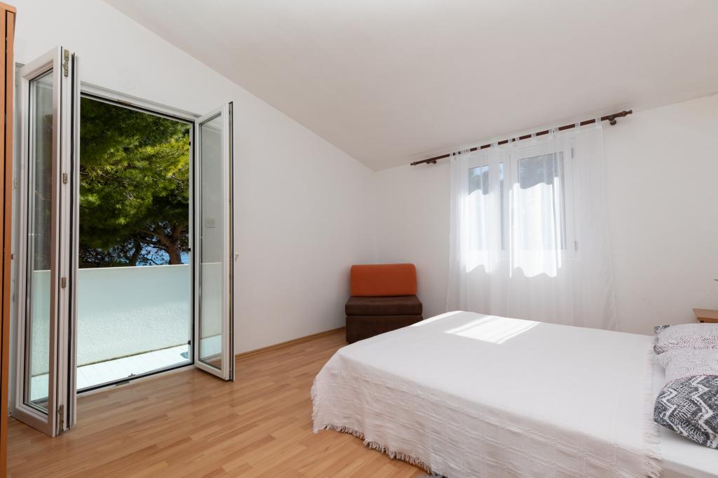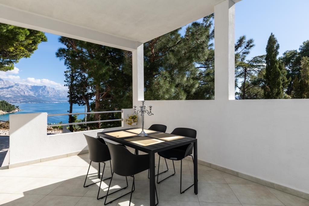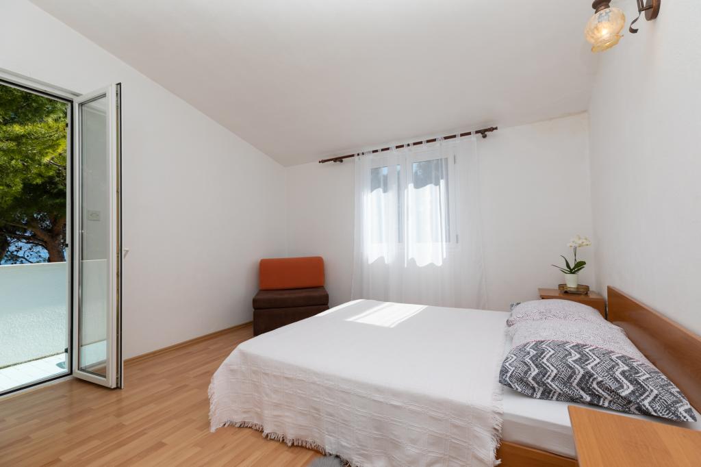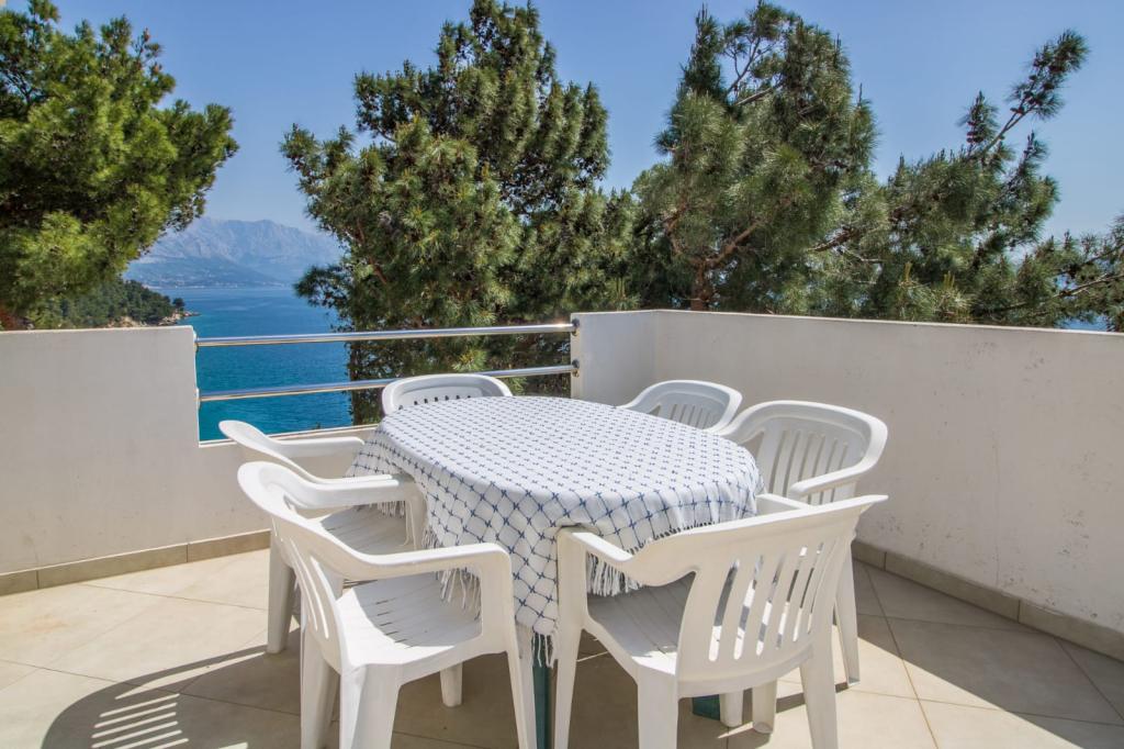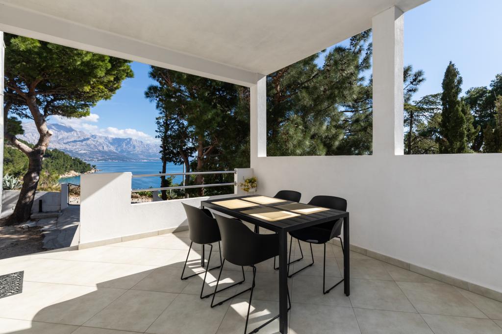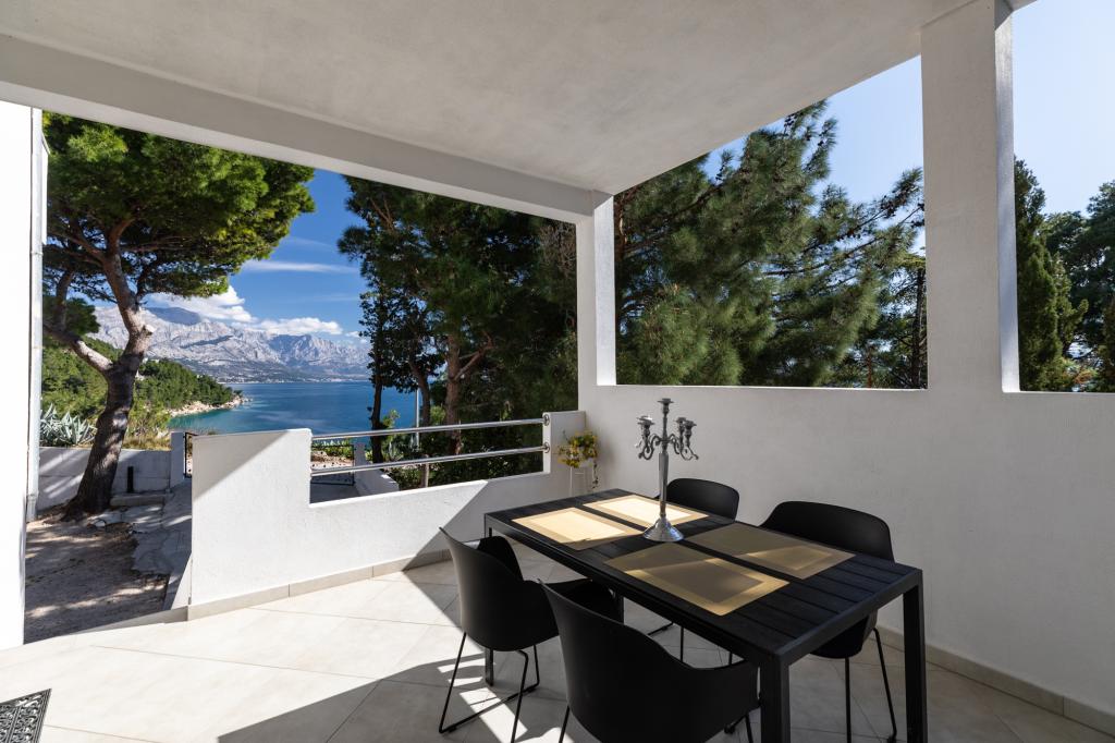 Hiša vsebuje tri stanovanja. Vsak apartma ima ločen vhod, velike terase in balkone s pogledom na morje in planino Biokovo. Do plaže je dve minuti hoje. Hiša ima veliko parkirno mesto pred hišo. Dobrodošli
