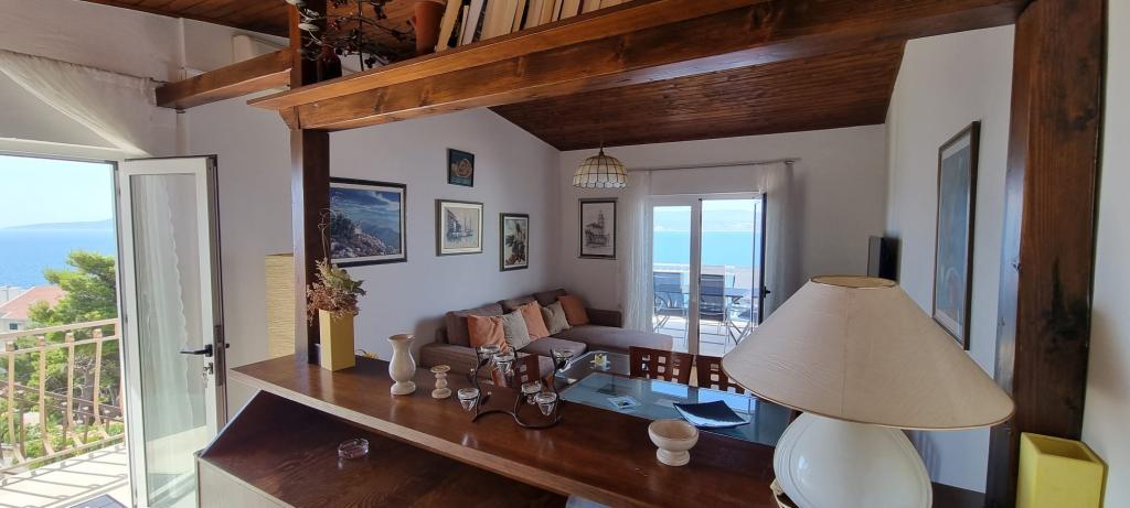 Razgledni apartma se nahaja v naselju Medići 100 metrov od morja in je idealen za pobeg od vsakdanjega urbanega življenja in uživanje z družino ali prijatelji. Enosobno stanovanje obsega 42 m2 notranjih in 21 m2 zunanjih površin. Velika zunanja terasa vam ponuja idealen pogled na otok Brać in Jadransko morje, ki je kot nalašč za uživanje v vročih poletnih dneh in prijetnih in mirnih nočeh.
