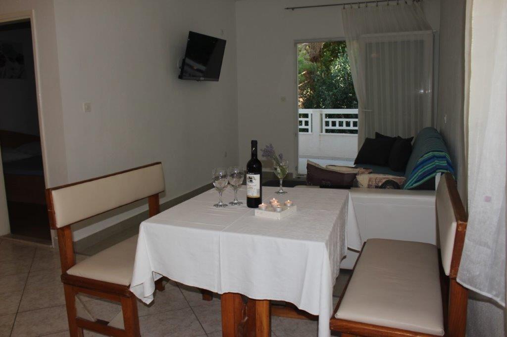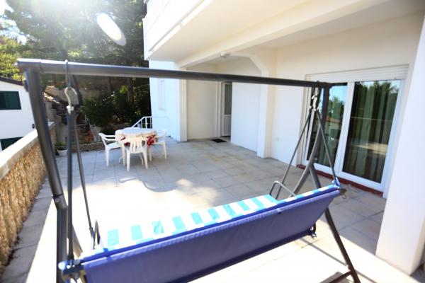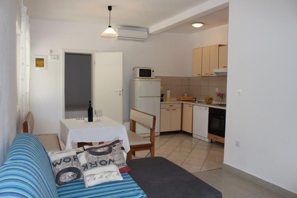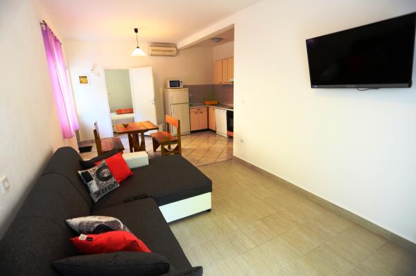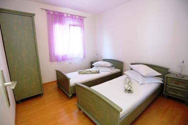 Apartmaji so sodobno opremljeni, imajo vse kar potrebujete za prijetno bivanje. Vsako stanovanje ima ločen vhod. Dvorišče je veliko, zato je primerno za druženje na prostem in žar. Plaža je oddaljena 50 metrov. Ima posebno zunanjo sanitarno enoto poleg žara in pralni stroj, ki ga lahko uporabljajo vsi gostje apartmaja. Center in vsi pomembni objekti so od apartmaja oddaljeni približno 200 metrov.