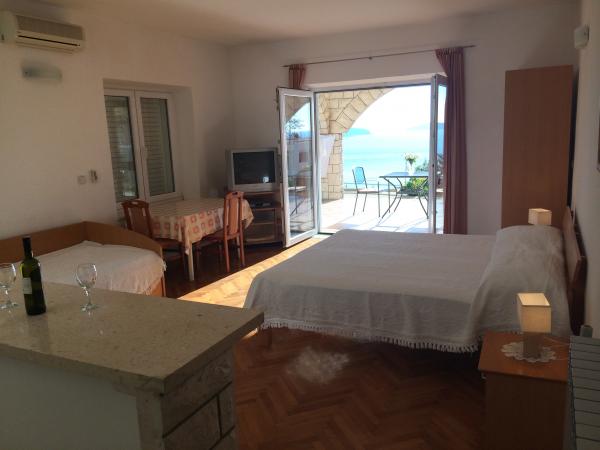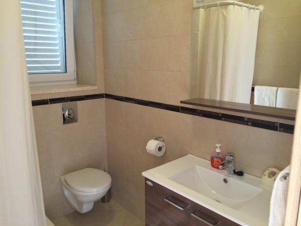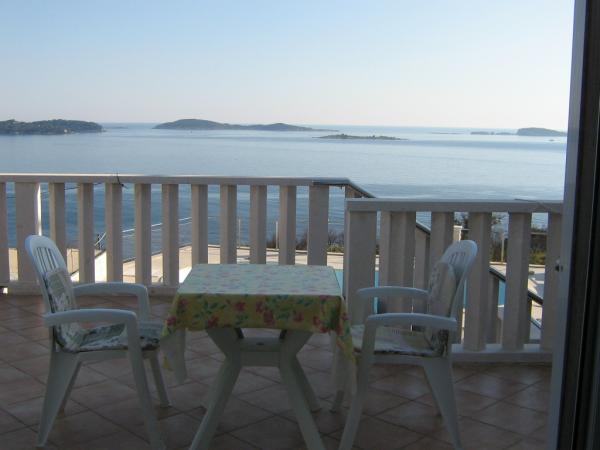 Bil je zelo dober, zelo topel lastnik, odlična dobrodošlica, zelo čiste sobe, lepo urejene. Bazen ob vznožju apartmaja s pogledom na morje. Nič za povedati, toplo priporočamo! 2 odrasla + 2 otroka