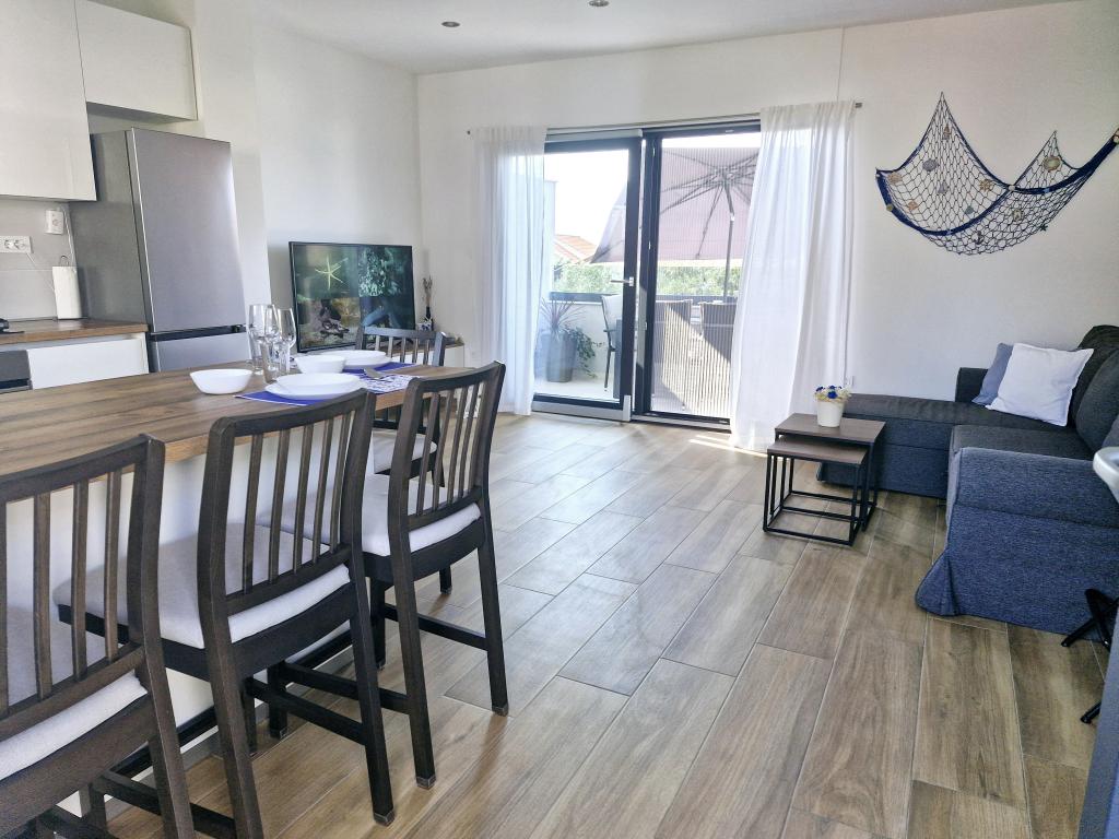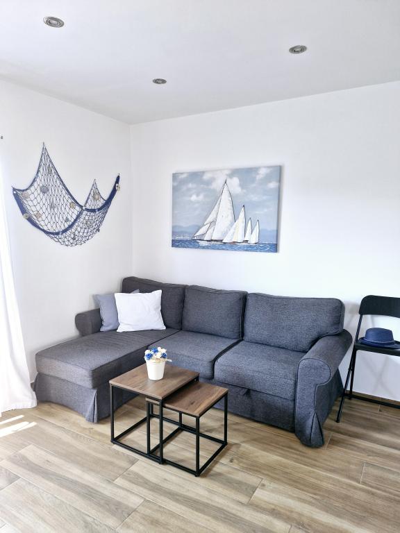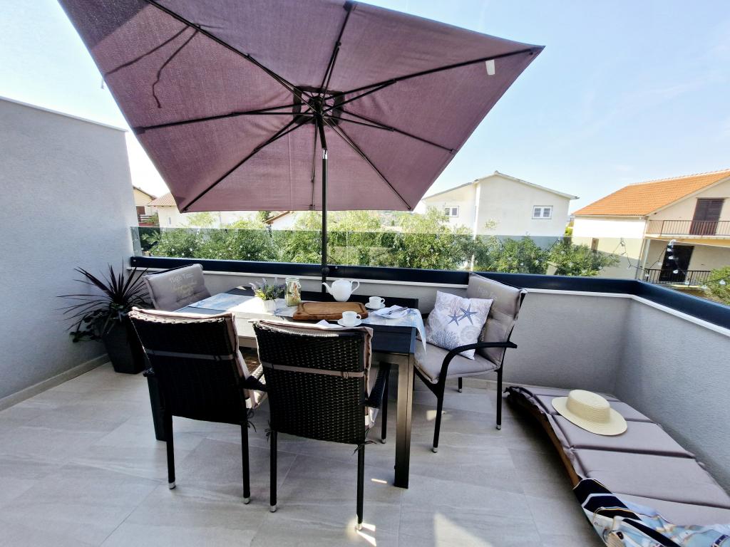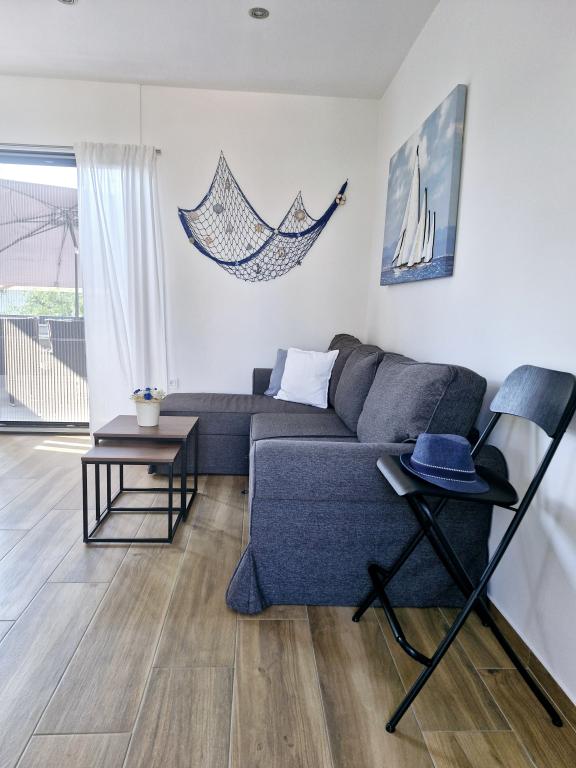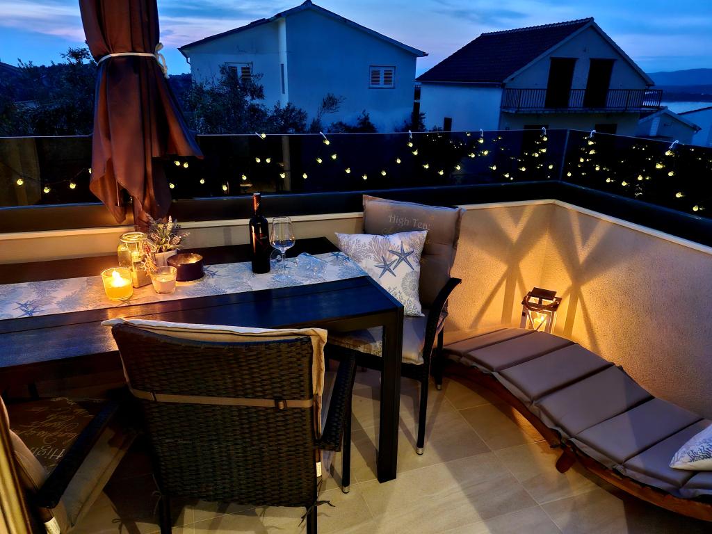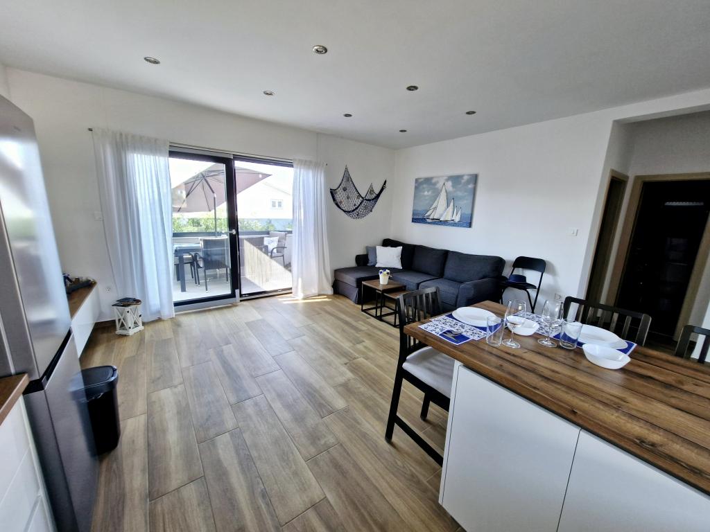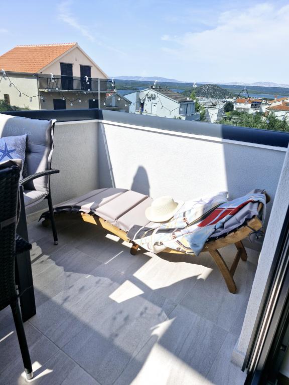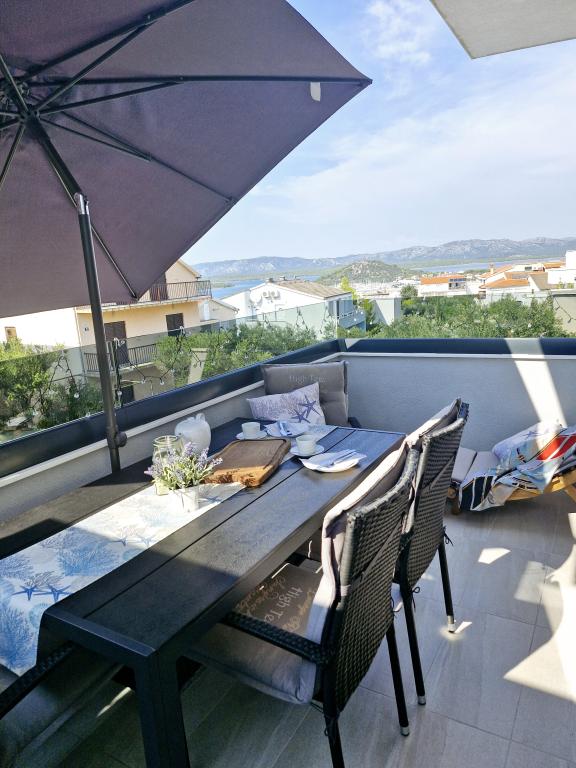 Apartma se nahaja na otoku Murter v mestu Murter. S kopnim je povezan z mostom, ki v celoti zagotavlja prometno komunikacijo. Stanovanje se nahaja v novo obnovljeni hiši in meri 50 m2. Apartma sprejme do 3 osebe (2+1). Gre za prvo nadstropje hiše, ki se nahaja v mirni ulici in kot taka nudi mir in diskretnost za prijeten dopust. Sestoji iz kuhinje/jedilnice/dnevne sobe, spalnice, kopalnice in balkona s pogledom na morje. V spalnici je zakonska postelja (dimenzije 160x200cm), v dnevni sobi pa udoben raztegljiv kavč. Opremljen je z vsemi gospodinjskimi aparati, 4k Android in satelitsko televizijo, internetom (Wi-Fi), klimo in parkirnim mestom pod video nadzorom. Pralni stroj je na voljo za ohranjanje čistega perila med bivanjem v našem apartmaju. Stavba ni namenjena kadilcem, ima pa balkon, kjer je kajenje dovoljeno. Vzdrževanju stanovanja posvečamo veliko pozornosti.