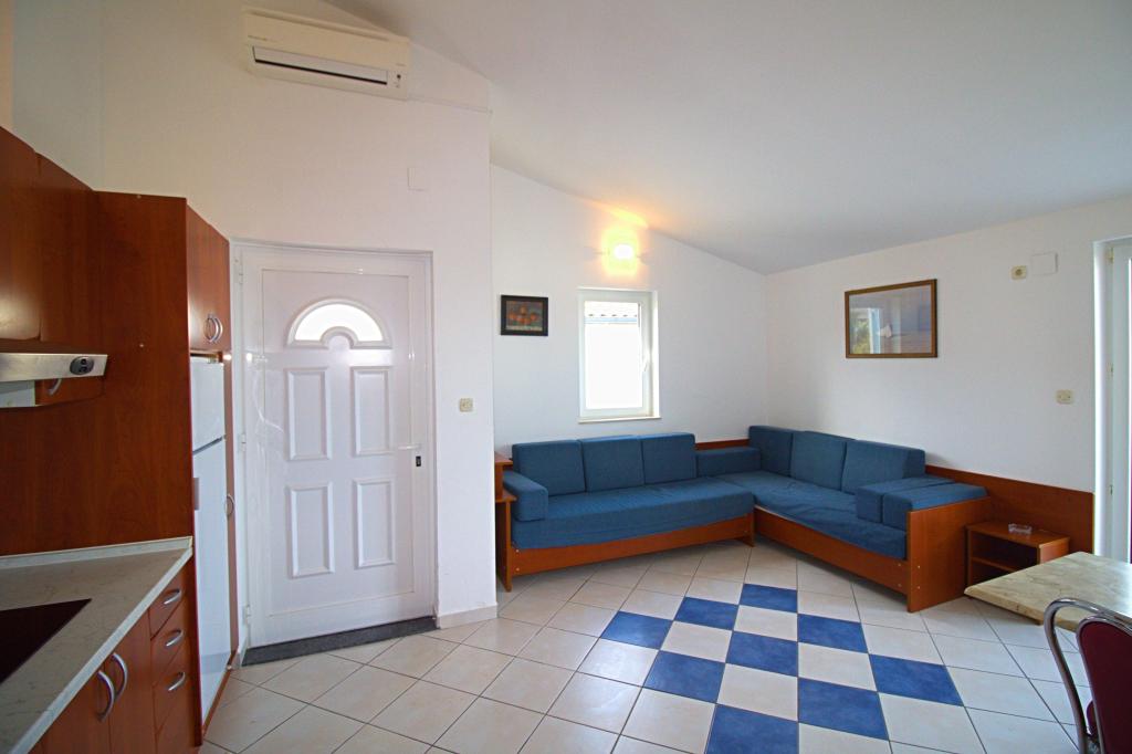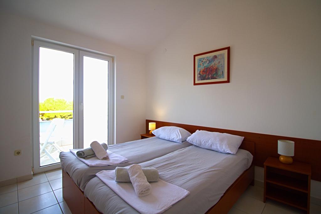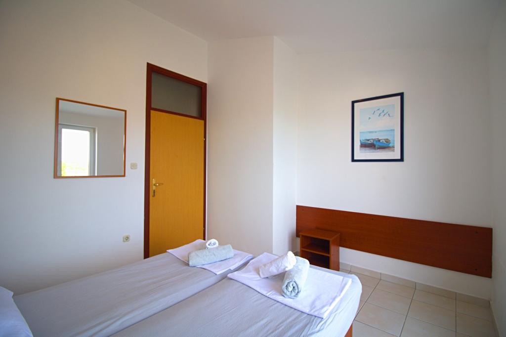 Apartma se nahaja na mirni in tihi lokaciji nedaleč od peščene plaže Slanica. Apartma ima eno spalnico, ki lahko sprejme 2 odrasli osebi. V dnevni sobi je dodatno ležišče, ki lahko sprejme dva majhna otroka ali 1 odraslo osebo. Apartma ima kopalnico s tušem. Apartma ima teraso s pogledom na morje. Od centra mesta je oddaljen 10 minut hoje, od prve plaže pa 500 metrov. Pred hišo je brezplačno parkirišče za goste apartmajev in žar, ki ga lahko uporabljate brezplačno. Apartma ima klimatsko napravo, brezplačen WiFi, kuhinjo s hladilnikom, štedilnikom in mikrovalovno pečico.