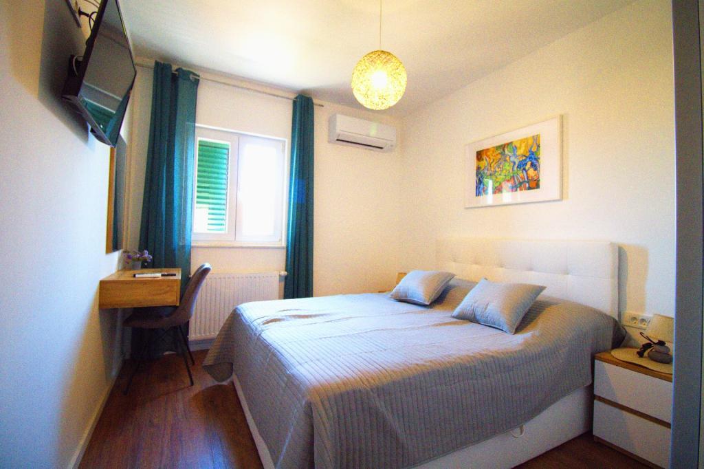Doživite sproščujoče počitnice v našem na novo prenovljenem dvosobnem apartmaju, popolnem za do 4 osebe. Nahaja se na odlični lokaciji, le 8 minut hoje od centra mesta in 12 minut od čudovite plaže Slanica. Apartma nudi udobno namestitev s klimatsko napravo in televizijo v spalnici in dnevni sobi ter vključuje varovano parkirišče. S svojo teraso je idealen kraj za sprostitev s pogledom na morje in uživanje na čudovitih plažah.