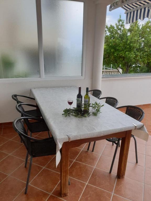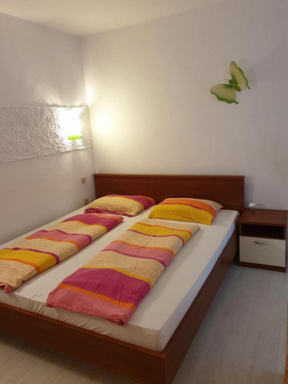 Za vaš popoln dopust vam ponujamo dva lepo urejena in popolnoma opremljena apartmaja (klima, wi-fi, brezplačno satelitsko televizijo) z eno / dvema spalnicama, kuhinjo, kopalnico, dnevno sobo in seveda neizogibno veliko teraso, ki ponuja lepo pogled na morje in kornatski arhipelag. Objekt se nahaja v mirnem delu mesta, ulični ulici, zato je idealen za goste, ki iščejo mir in tišino, ter za družine z otroki. Za ljubitelje žara je na voljo velik zunanji žar. Na 20m od hiše je čez cesto prodnata in kamnita plaža. Rešitev poletne vročine lahko najdete v naravni senci borovega nasada in osvežitvi, razen v čudovitem čistem morju in pod sončno zunanjo prho. V 10 minutah hoje se nahaja peščena plaža Slanica in plaža Čigrađa, ki nudijo dodatne zmogljivosti, kot so restavracije, akvapark, bari in podobno. Dobrodošli!