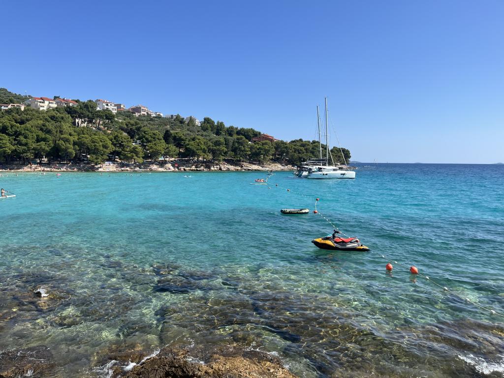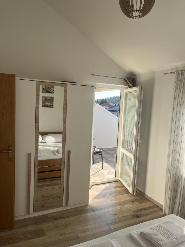 Center Murterja - majhno mesto za odlične počitnice. Dobrodošli v apartmajih Blue Pearl na izjemni lokaciji v samem središču Murterja! Novi apartmaji Blue Pearl se nahajajo na mirni lokaciji v samem središču Murterja in 10 minut od najlepših plaž na otoku Murterju. Lokacija in čudovit razgled iz apartmaja sta odlična izbira za vse, ki iščejo sproščujoče in mirne počitnice na bližnjih plažah otoka Murter. Apartmaji ponujajo prijetno vzdušje in teraso za sprostitev in uživanje v razgledu. Cene vključujejo najem za 2 osebi, turistično takso, parkirni prostor in brezplačen Wi-Fi. Apartma ima spalnico z zakonsko posteljo in teraso, opremljeno s sedežno garnituro, kopalnico, dnevno sobo s kuhinjo in jedilnico. Apartma ponuja posteljnino, brisače, posodo, mikrovalovno pečico in aparat za kavo. Gostje lahko uživajo v uporabi pokritega zunanjega žara, ki se nahaja v slikoviti kamniti hiši. Apartma ima zložljivo otroško posteljico za najmlajše.