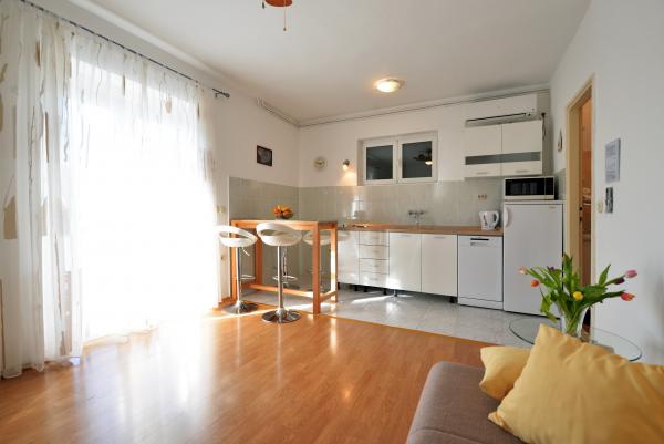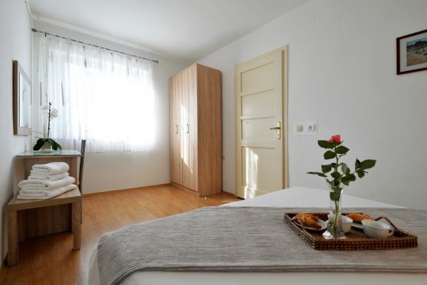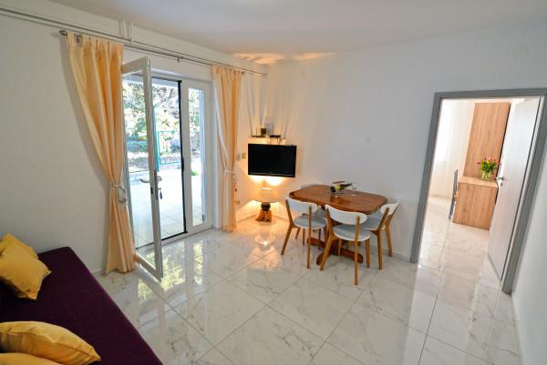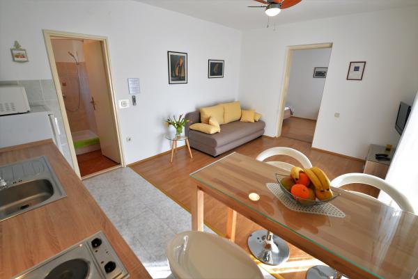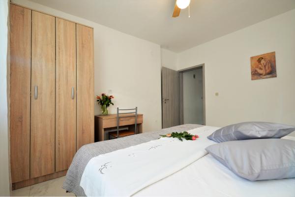 Bivali smo že drugo leto zapored! Zelo nam je bila všeč namestitev, ker je vse čisto, prostorna terasa in funkcionalnost razporejenih prostorov! Bližini plaže različne in dostopne peš v nekaj minutah. Mi smo obiskali 3 (mestno, slanica, podvrške) vse zelo lepo. V biližini pekarna, trgovina, ogromno restavracij. Zelo fajn za aktivno ali umirjeno doživljanje dopusta! Domačini pa prijazni in niso vsiljivi.