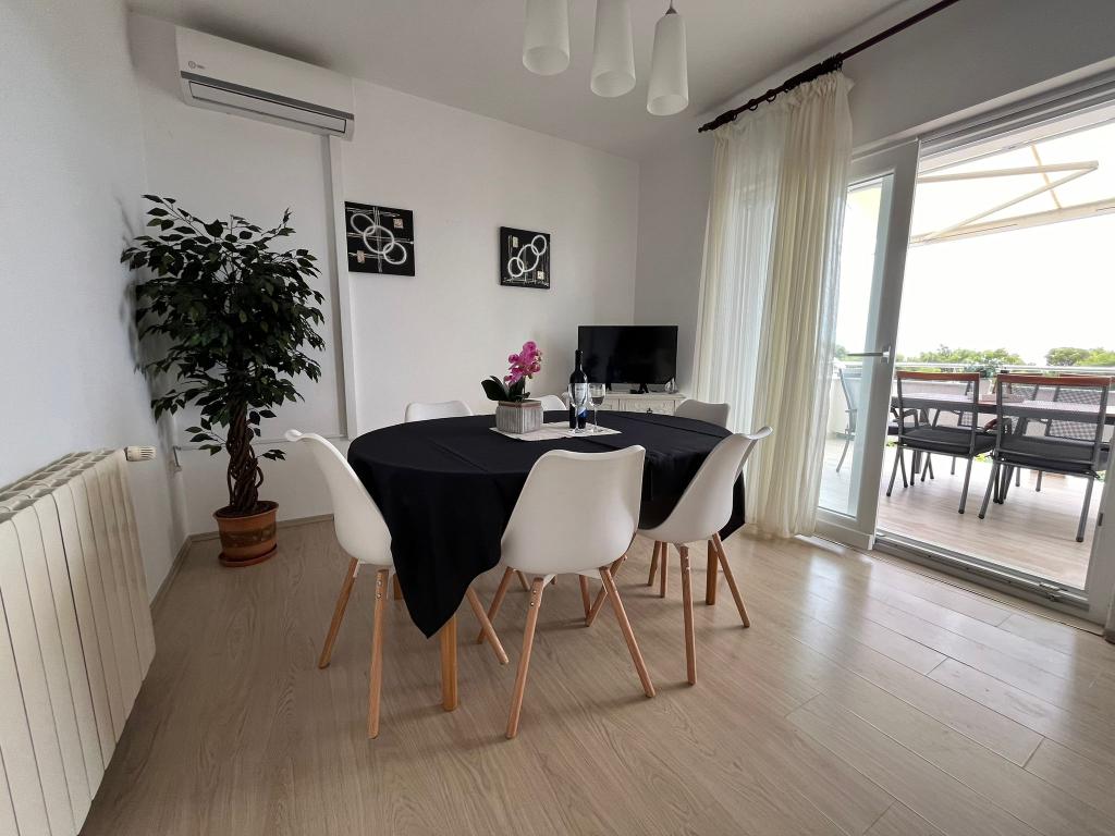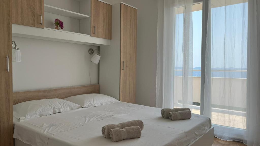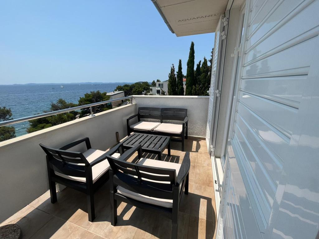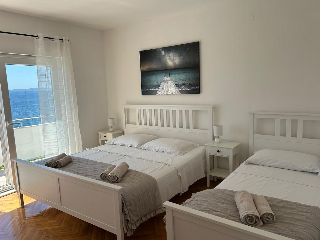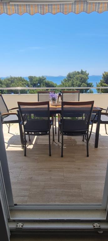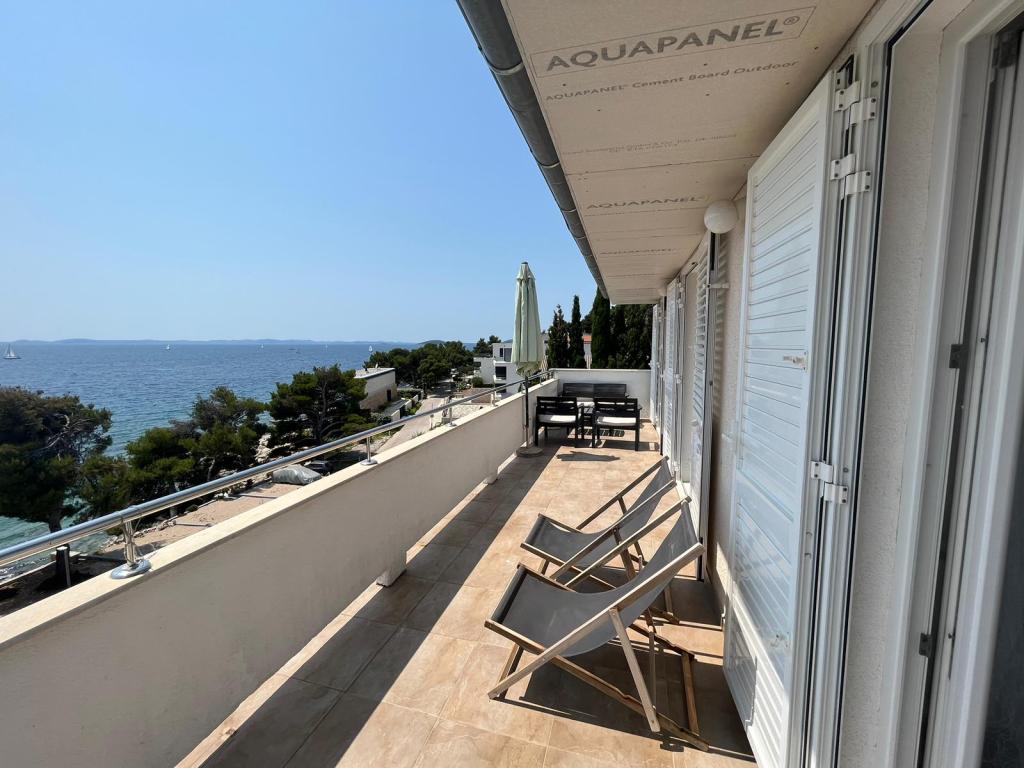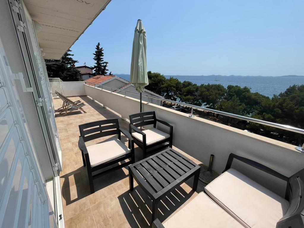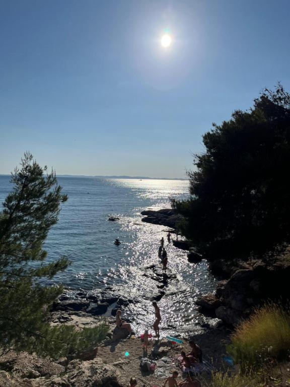 Popolnoma opremljeni apartmaji v zasebni hiši, 1. vrsta do morja s pogledom na narodni park Kornati. Nahajamo se v mirnem predelu v bližini znane peščene plaže Slanica, 10 minut hoje od centra.