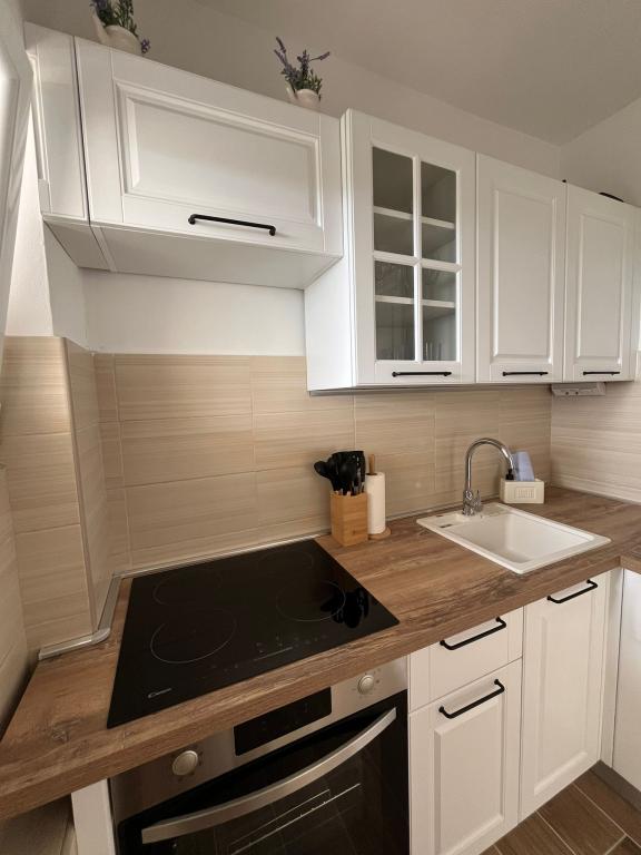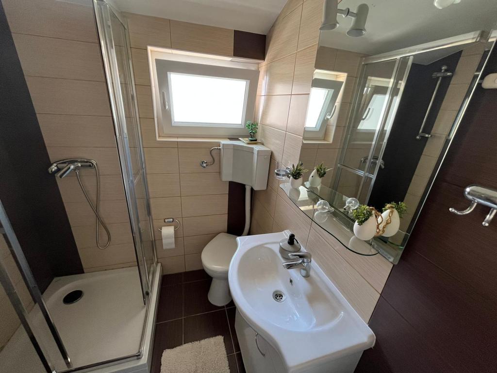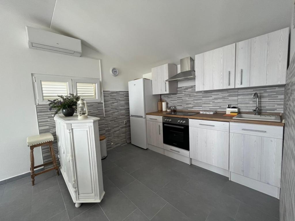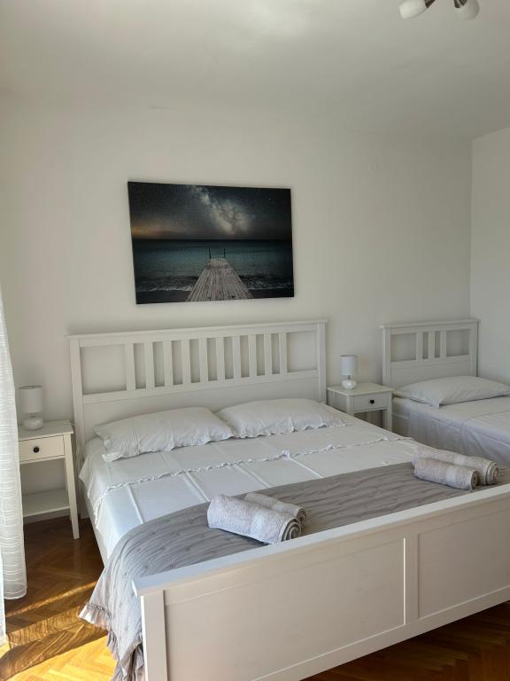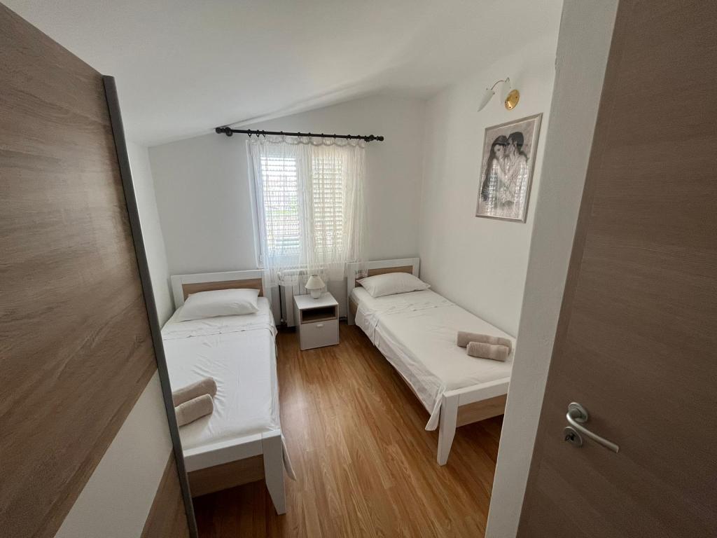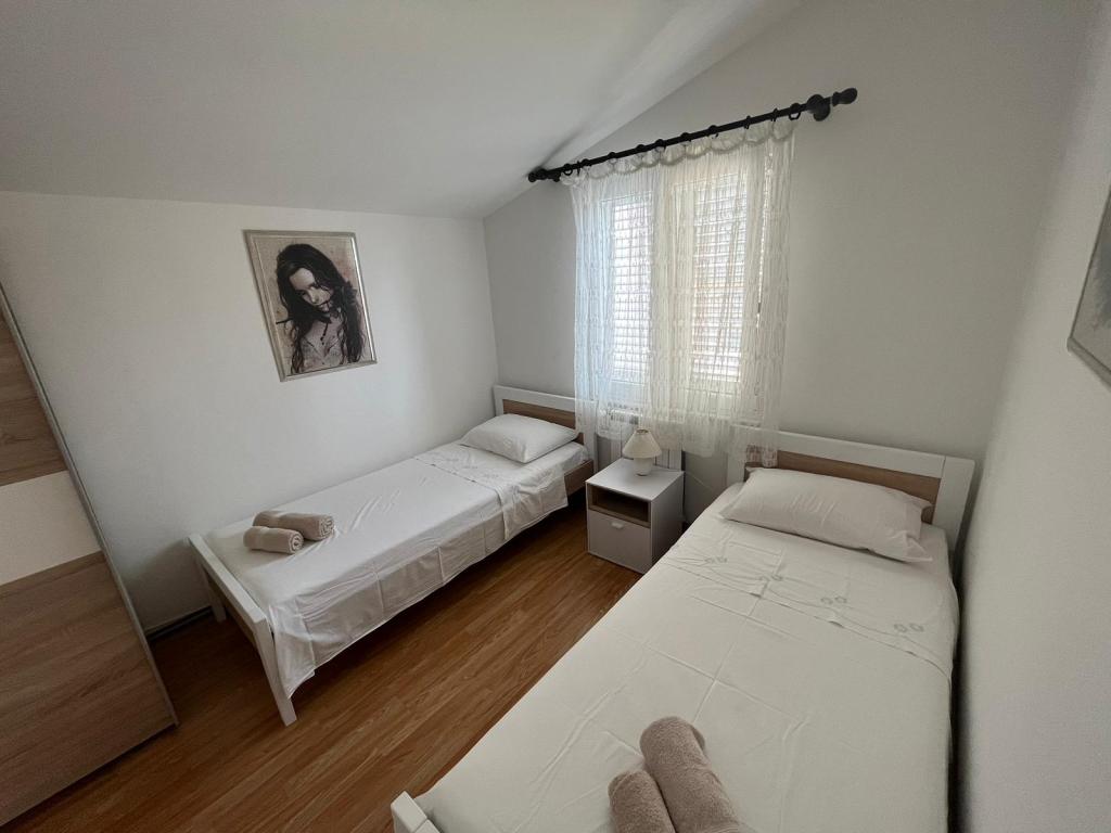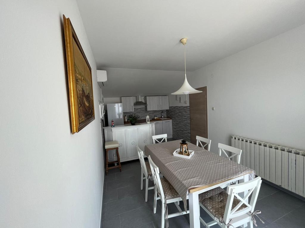 Popolnoma opremljeni apartmaji v zasebni hiši, 1. vrsta do morja s pogledom na narodni park Kornati. Nahajamo se v mirnem predelu v bližini znane peščene plaže Slanica, 10 minut hoje od centra.