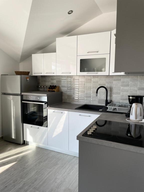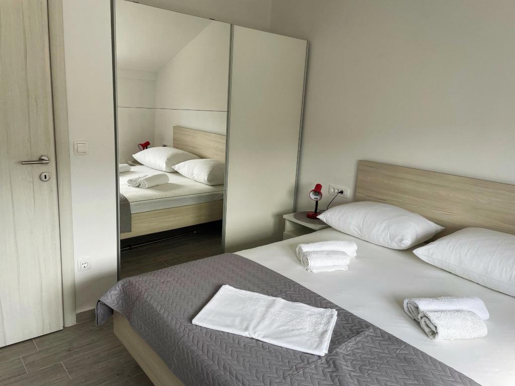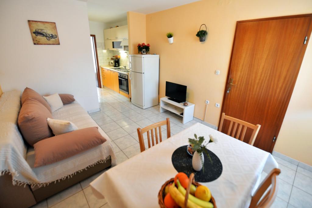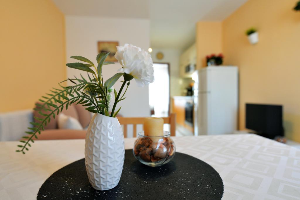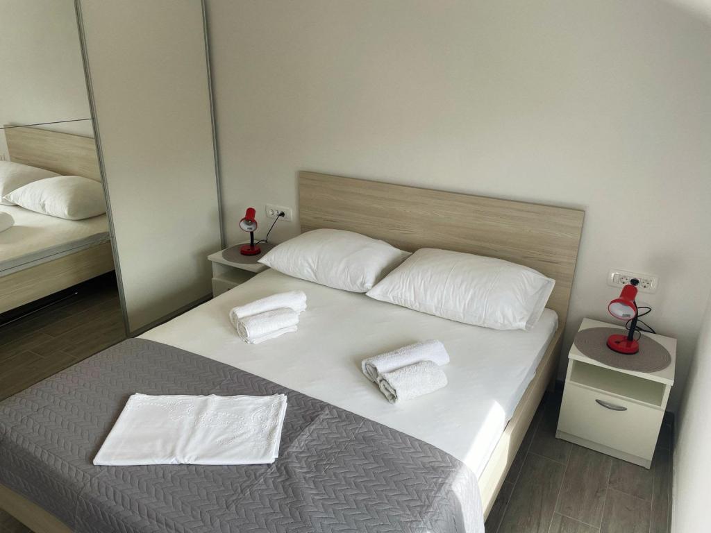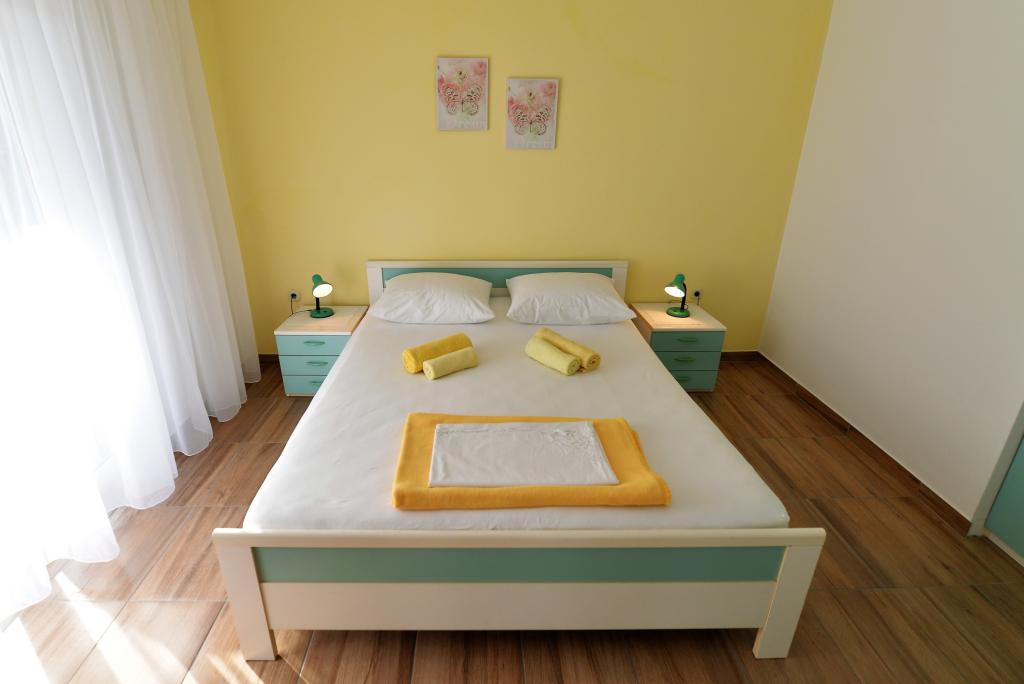 Naši apartmaji se nahajajo v samem središču mesta. Na voljo so štirje apartmaji, dva enosobna in dva dvosobna. Imajo čudovit razgled na morje, ki privablja naše goste, od katerih se nekateri vračajo. Glavna plaža je oddaljena le nekaj minut, središče mesta pa 5 minut hoje. Naši gostje so zelo zadovoljni z našo gostoljubnostjo, imamo tudi čudovit velik vrt, poln rož in različne lokalne zelenjave. Zato nas obiščite, ne bo vam žal! Veselimo se vašega obiska :)