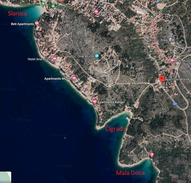 Apartmaji Marek - apartmaji za vaš dopust. Apartmaji so popolnoma opremljeni in klimatizirani. Pred apartmajem so velike terase s pogledom na morje in čudovit narodni park Kornati. Na dvorišču je možnost parkiranja avtomobila in uporabe žara. Plaža in vsi objekti za popoln dopust so v neposredni bližini. Obrnite se na nas z zaupanjem! Apartmaji Marek.