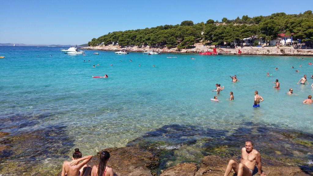Stanovanje s čudovitim pogledom na morje, ki se nahaja na glavni lokaciji le 40 metrov od morja z dvema zasebnima varovanih parkirnih mest vključena. Stanovanje ima tri spalnice, ki lahko spijo 6 odrasli 2 dodatnih ležišč za dve osebi. Apartma je opremljen s TV, klimatsko napravo, brezplačen WiFi, pečico in žar. Balkon / Terasa je 20m2 s čudovitim pogledom na morje, sončni zahodi, Kornate in svetilnika. To je le 4 minute hoje do plaže Slanica, 12 minut hoje do plaže Podvršci, 15 minut hoje do plaže Čigrađa in 5 minut hoje do trgovin. Od centra mesta je 20 min hoje.