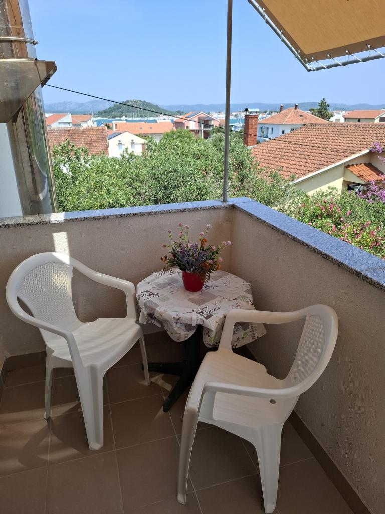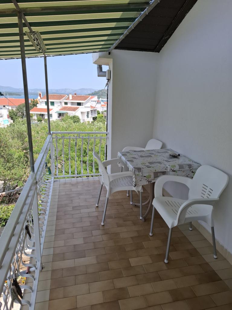 Apartma se nahaja v mirnem predelu Murterja, v prvem nadstropju hiše, tristo metrov do prve plaže in deset minut hoje do peščene plaže Slanica. Gostom je na voljo dostop do interneta in varovano parkirišče. Turistična taksa in klima vključeni v ceno.
