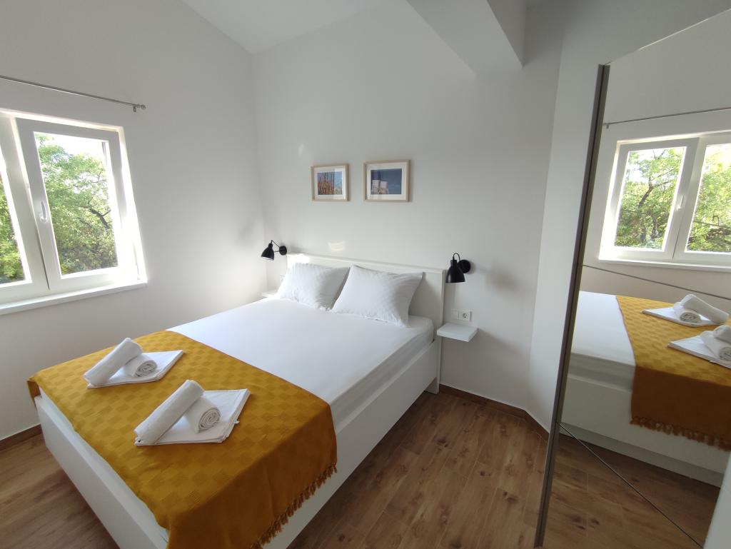 V drugem nadstropju družinske hiše, v mirni in prijetni soseski Murterja, se nahajajo naši klimatizirani apartmaji, idealni za sproščujoče bivanje parov in družin. Plaža Čigrađa je oddaljena 600 m, središče mesta pa 1,3 km. Objekt ponuja tri apartmaje: Apartma 80 m² za 4 osebe z dvema spalnicama, popolnoma opremljeno kuhinjo in balkonom s pogledom na morje Dva apartmaja 42 m² za 2 osebi, vsak z balkonom - eden s pogledom na morje, drugi s pogledom na vrt. Vsi gostje imajo brezplačno parkirišče, klimatsko napravo v vsakem apartmaju in pralni stroj v skupnem prostoru. Objekt je nekadilski, kajenje pa je dovoljeno na balkonih. Hišni ljubljenčki niso dovoljeni. Gostje cenijo mirno lokacijo, čistočo in udobje namestitve - odlično izhodišče za raziskovanje Murterja in okoliških plaž.