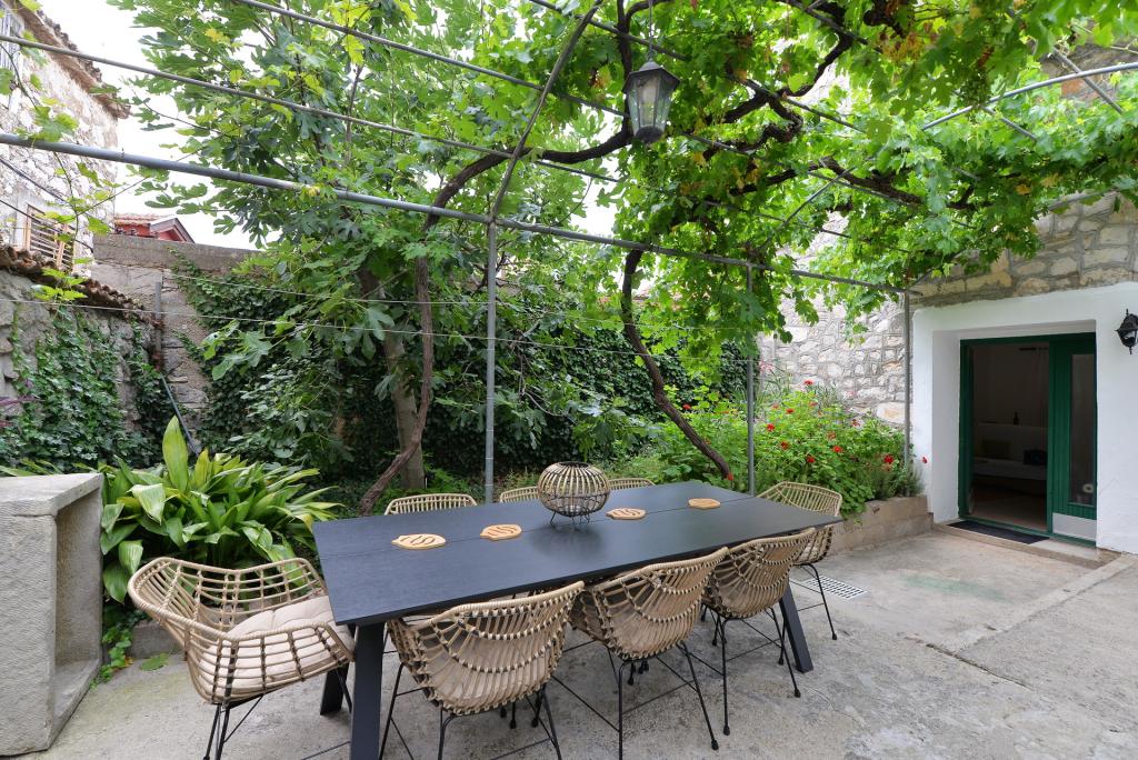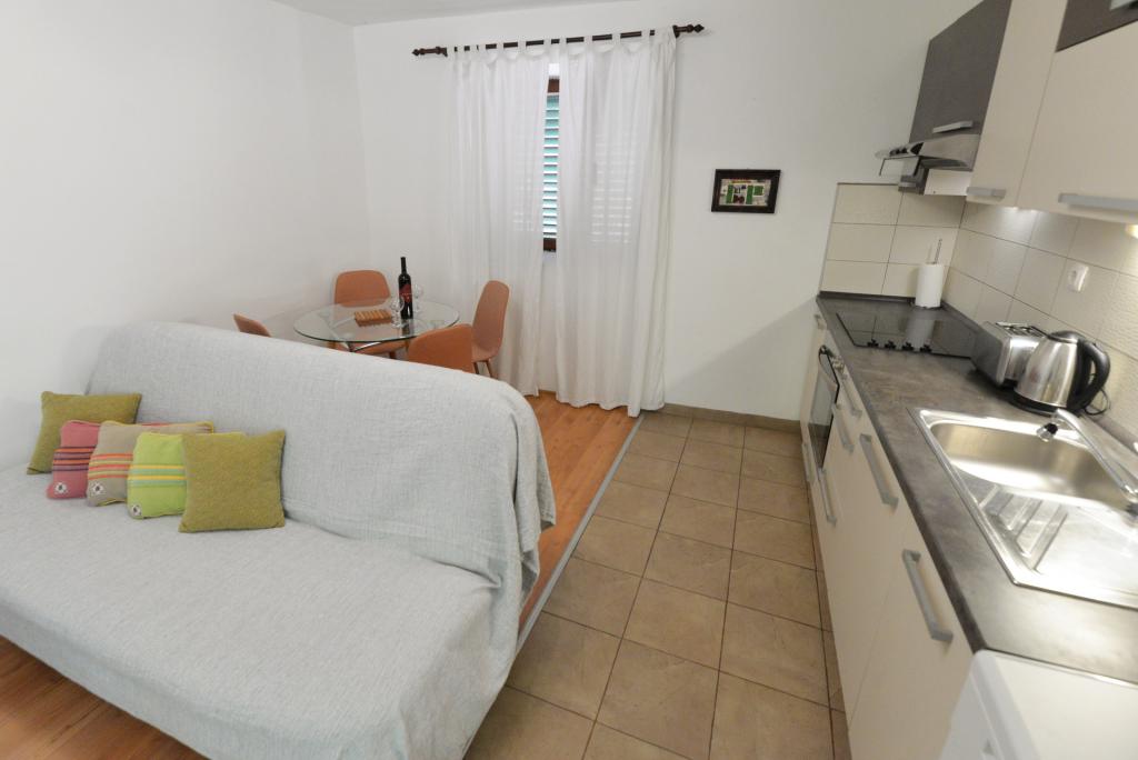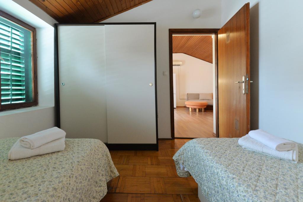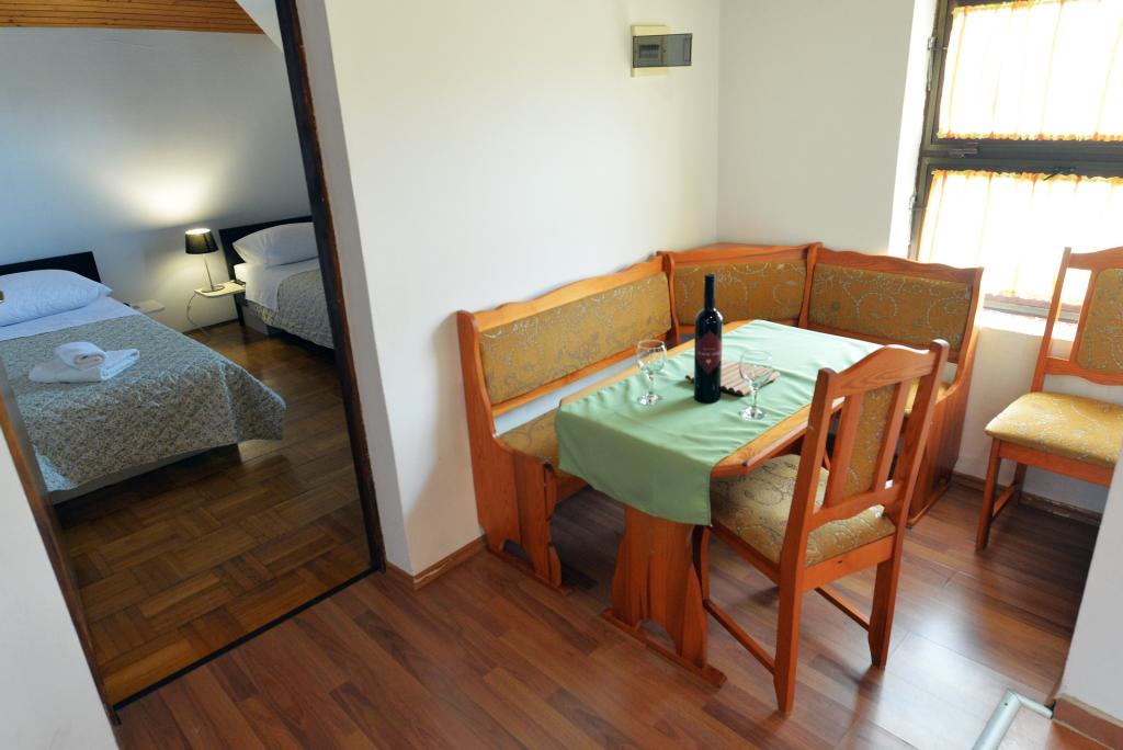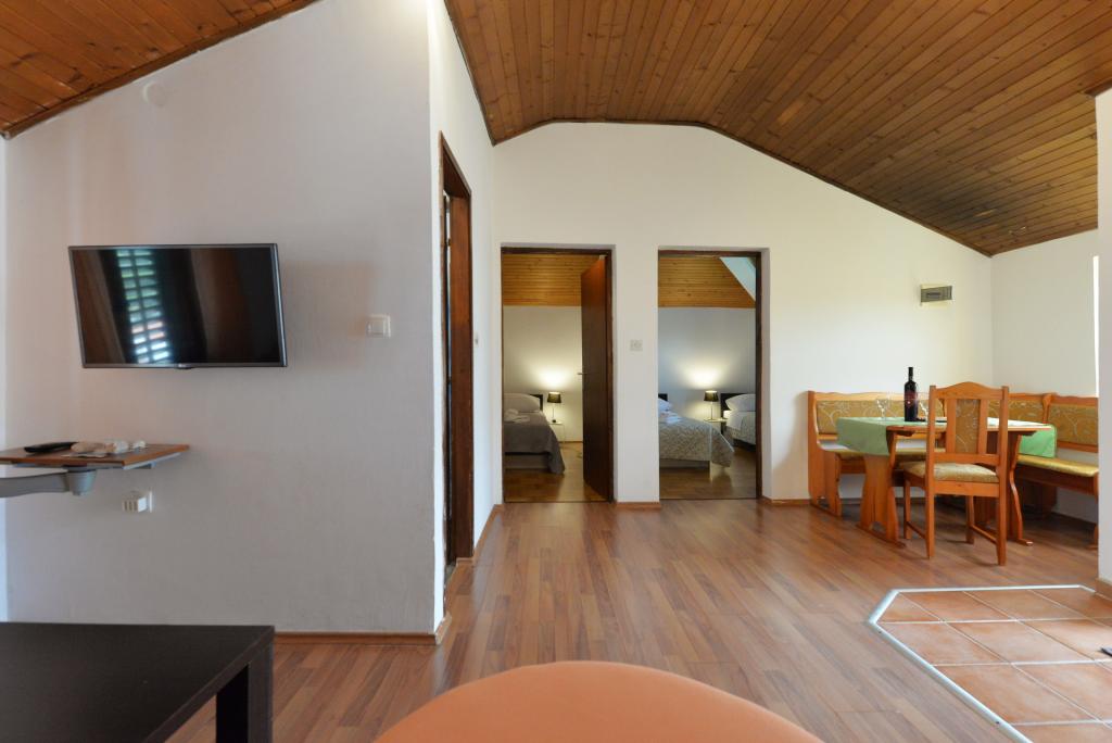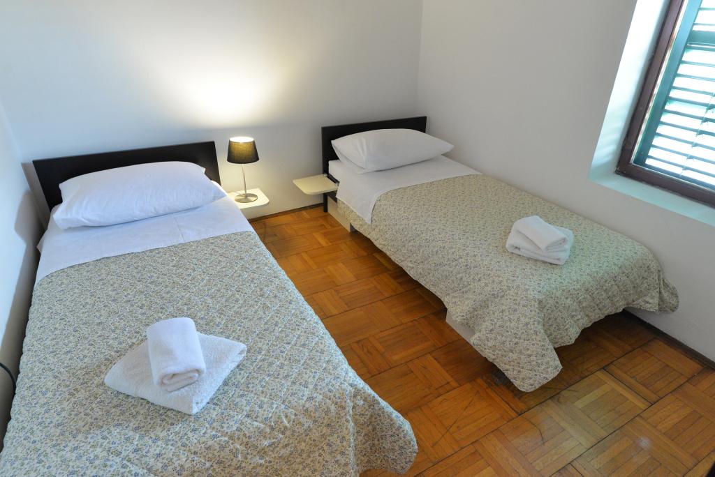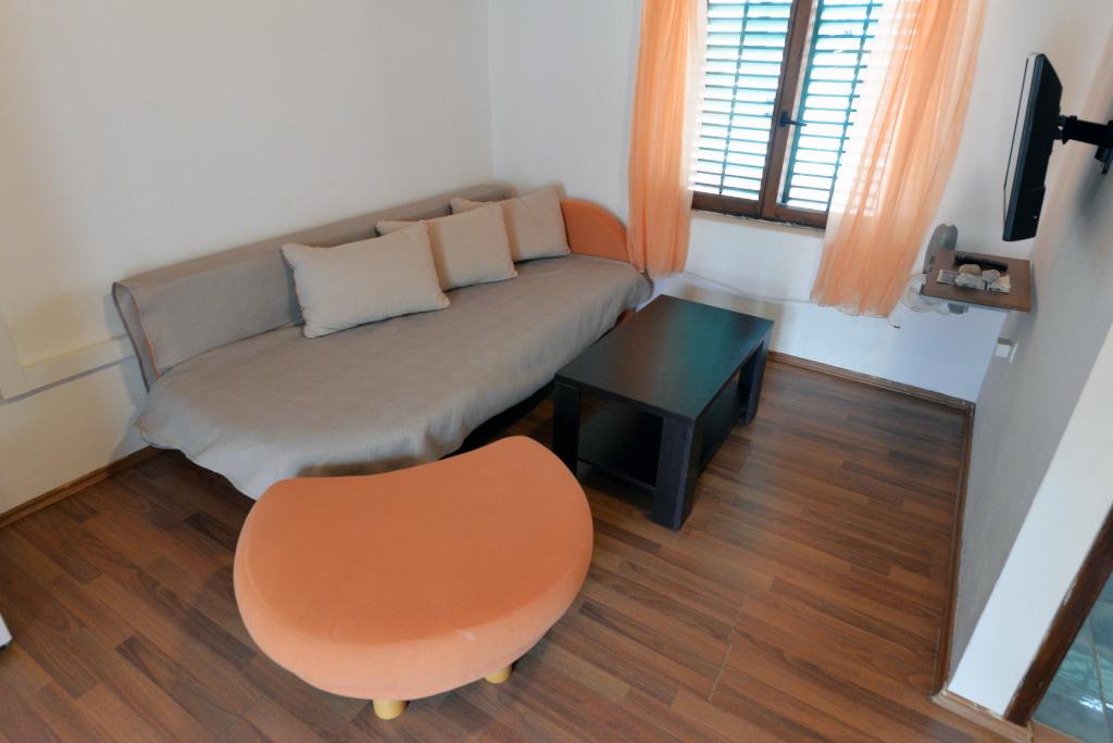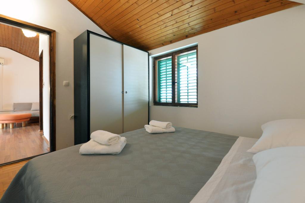 Apartma za 2+1 ali 2+2 osebi se nahaja v starem delu Murterja v avtentični dalmatinski kamniti hiši. Apartma ima eno sobo za 2 odrasli osebi, v dnevni sobi je kavč (pomožno ležišče), ki se lahko uporablja za spanje, na njem lahko spi 1 odrasel ali dva manjša otroka. Kuhinja je popolnoma opremljena. Apartma ima WiFi internet, klimo, pomivalni stroj, izven apartmaja je v shrambi pralni stroj, ki ga lahko uporabljate brezplačno. Pred apartmajem je velika terasa z žarom. Apartma ima brezplačno parkirišče. Apartma se nahaja v starem delu Murterja. Apartma ima dve spalnici za 4 odrasle osebe. V dnevni sobi je kavč (pomožno ležišče), ki se lahko uporablja za spanje. Apartma je opremljen z Wi-Fi internetom, klimo, pomivalnim strojem, pralnim strojem. Stanovanju pripadata dve brezplačni parkirni mesti. Terasa s slike je uporabna.