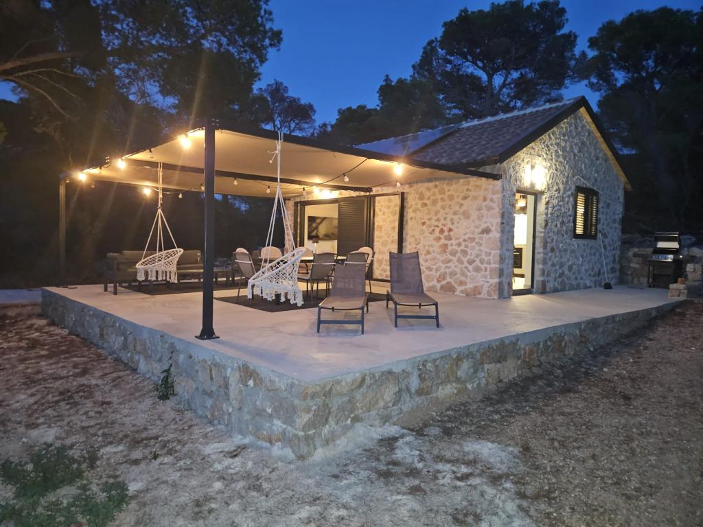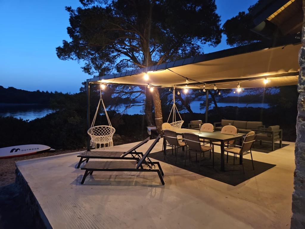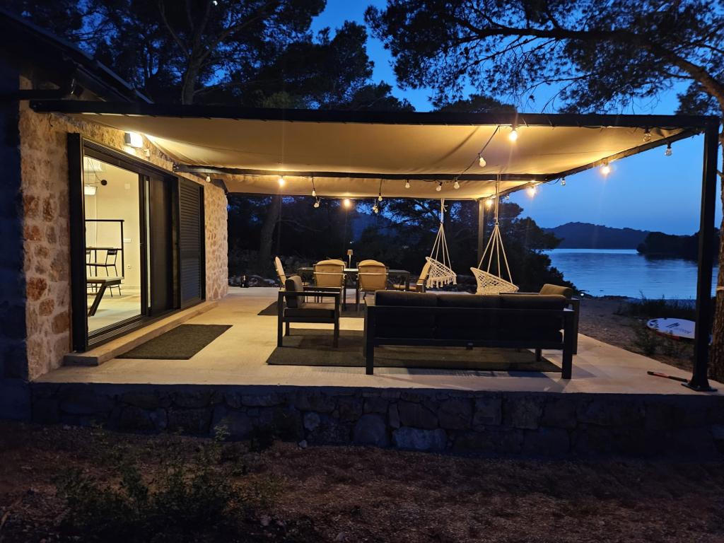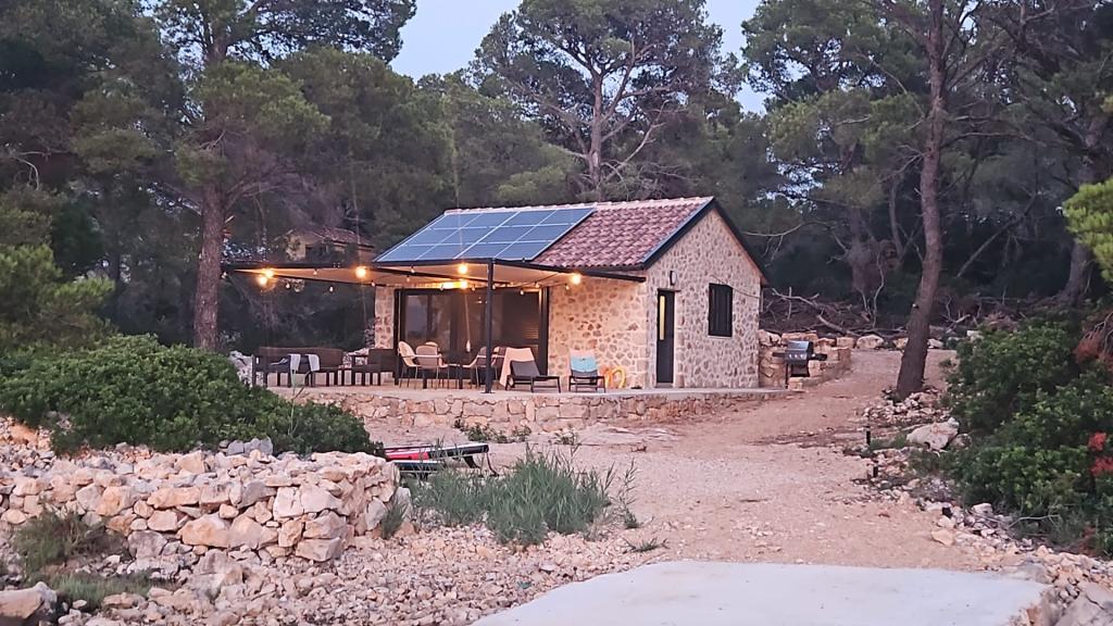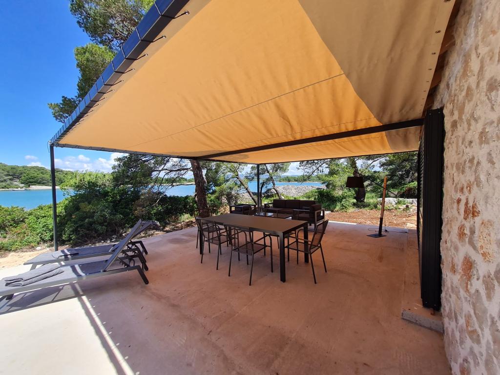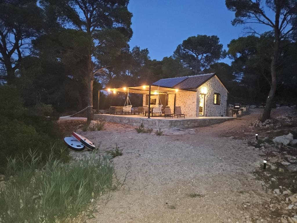Ribiška hiša ima sončne celice, ki proizvajajo 220 W električne energije. Voda je dobra za tuširanje (iz vodovoda ali deževnice), ogreva jo sonce. Vode je dovolj, če jo uporabljate racionalno. Hiša je v celoti opremljena z elektriko 220 V, klimatsko napravo, 2 televizorjema, štedilnikom, pečico, bojlerjem, kuhinjo z napo, vsemi kuhinjskimi električnimi aparati, posteljnino in brisačami, zunanjim žarom, zunanjo jedilno mizo, sedežno garnituro, ležalniki, gugalnicami.... Prevoz je vključen v ceno, lastnik pa zagotavlja varovano, pokrito parkirišče v Murterju. Hiša se nahaja na osamljenem območju, le 5 minut vožnje z majhnim čolnom, kajakom ali SUP-om od središča Murterja in vseh ugodnosti mestnega turističnega središča. Gostom ponujajo najem majhnega čolna s 6 KM pentathlonom, cena najema na dan 30 evrov. Gostom ponujajo najem napihljivega čolna Ranieri Cayman 28, športno-turističnega, z 2x250 KM Mercury, cena najema na zahtevo.