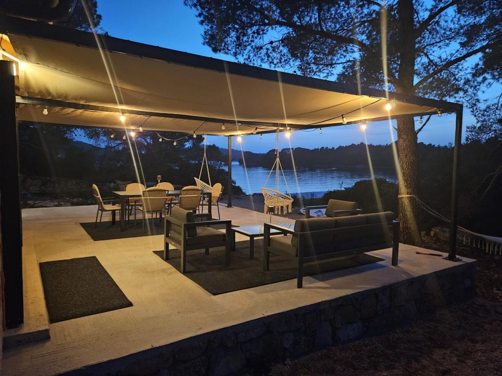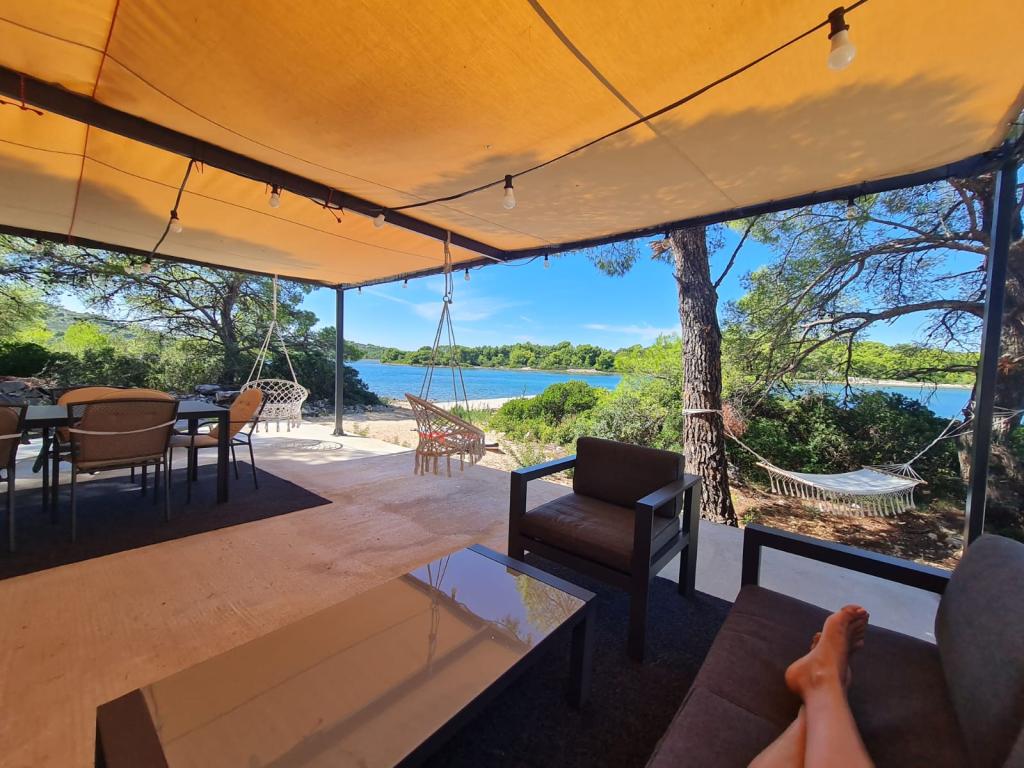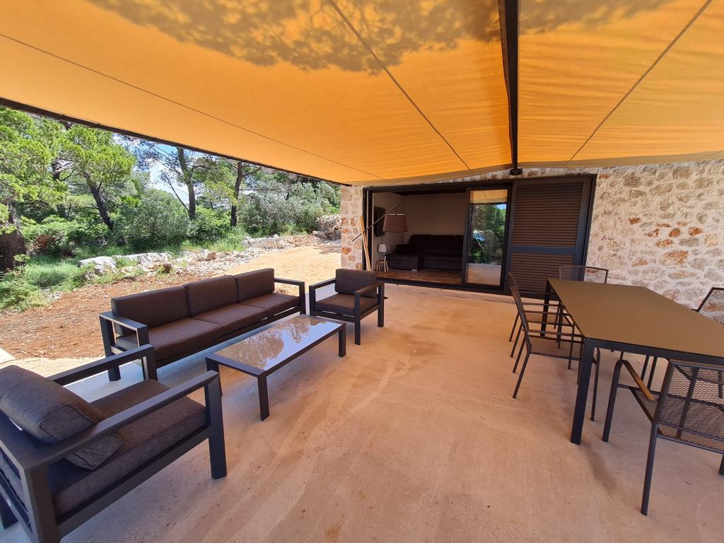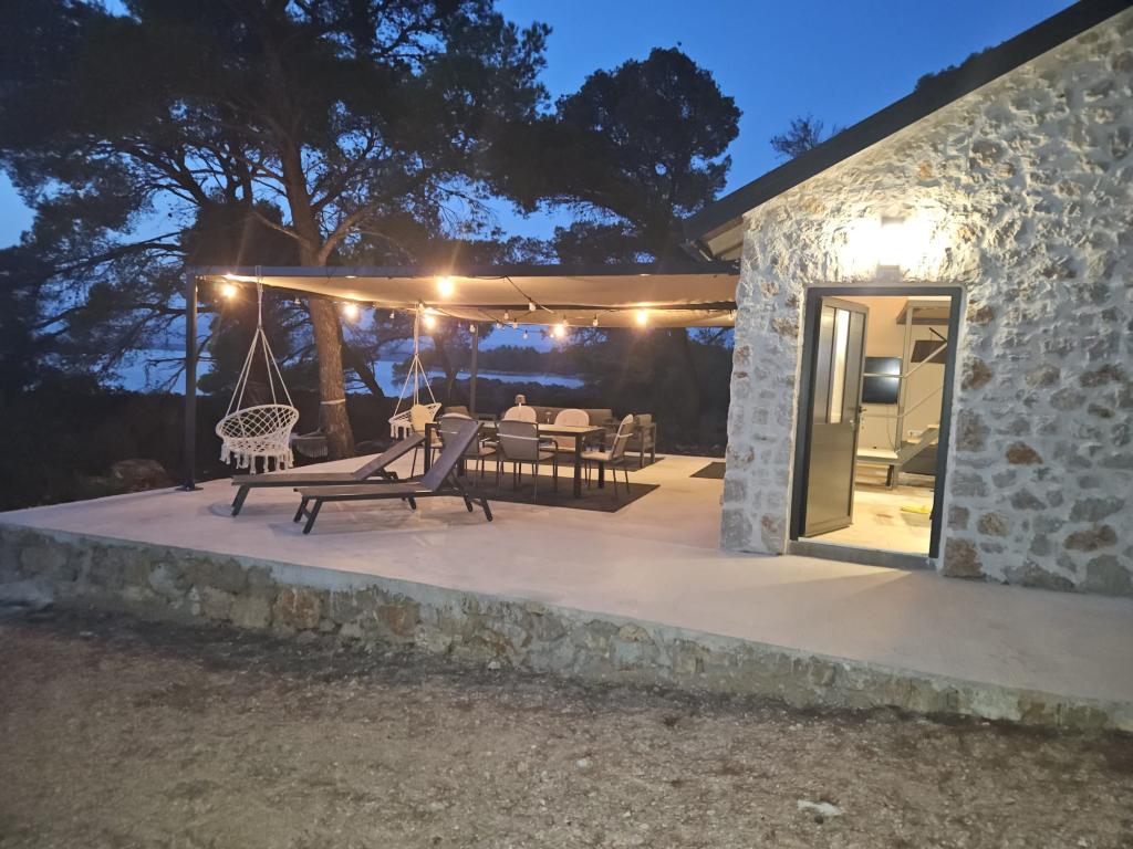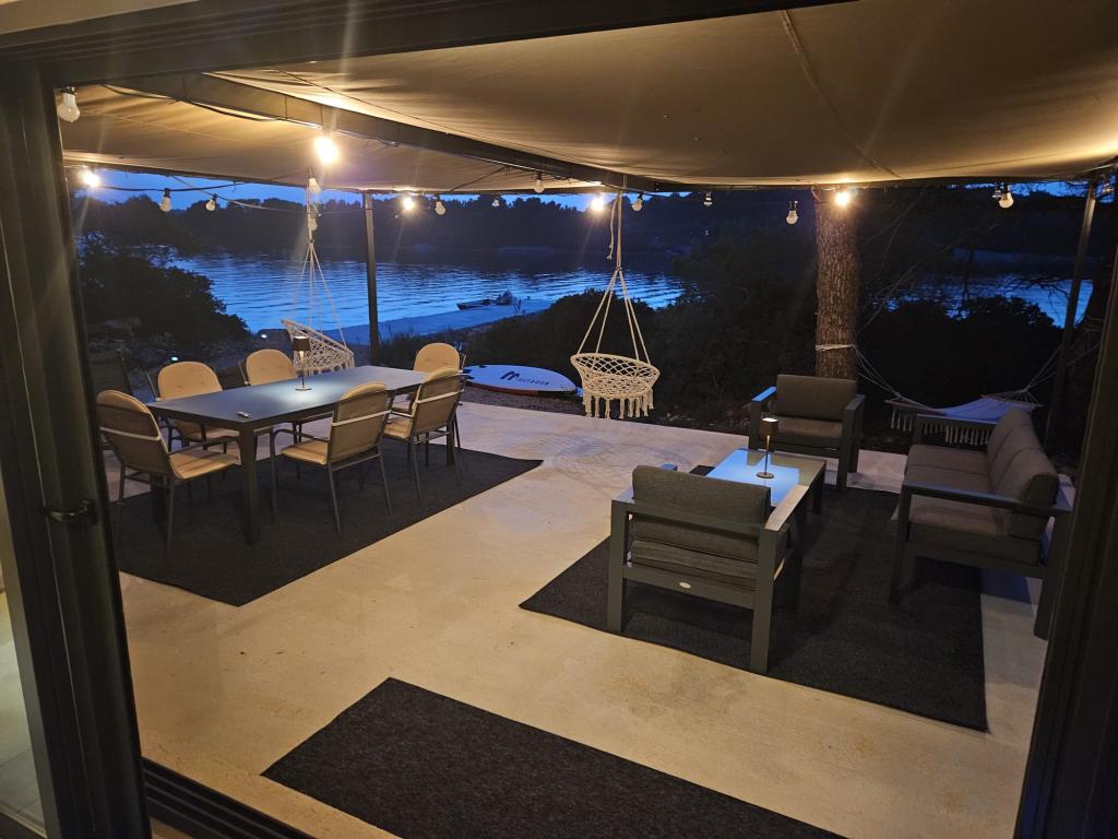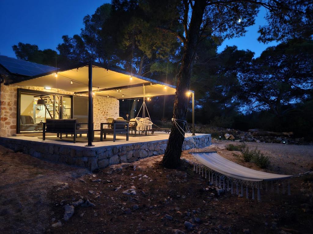 Ribiška hiša ima sončne celice, ki proizvajajo 220 W električne energije. Voda je dobra za tuširanje (iz vodovoda ali deževnice), ogreva jo sonce. Vode je dovolj, če jo uporabljate racionalno. Hiša je v celoti opremljena z elektriko 220 V, klimatsko napravo, 2 televizorjema, štedilnikom, pečico, bojlerjem, kuhinjo z napo, vsemi kuhinjskimi električnimi aparati, posteljnino in brisačami, zunanjim žarom, zunanjo jedilno mizo, sedežno garnituro, ležalniki, gugalnicami.... Prevoz je vključen v ceno, lastnik pa zagotavlja varovano, pokrito parkirišče v Murterju. Hiša se nahaja na osamljenem območju, le 5 minut vožnje z majhnim čolnom, kajakom ali SUP-om od središča Murterja in vseh ugodnosti mestnega turističnega središča. Gostom ponujajo najem majhnega čolna s 6 KM pentathlonom, cena najema na dan 30 evrov. Gostom ponujajo najem napihljivega čolna Ranieri Cayman 28, športno-turističnega, z 2x250 KM Mercury, cena najema na zahtevo.