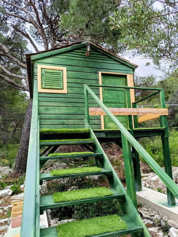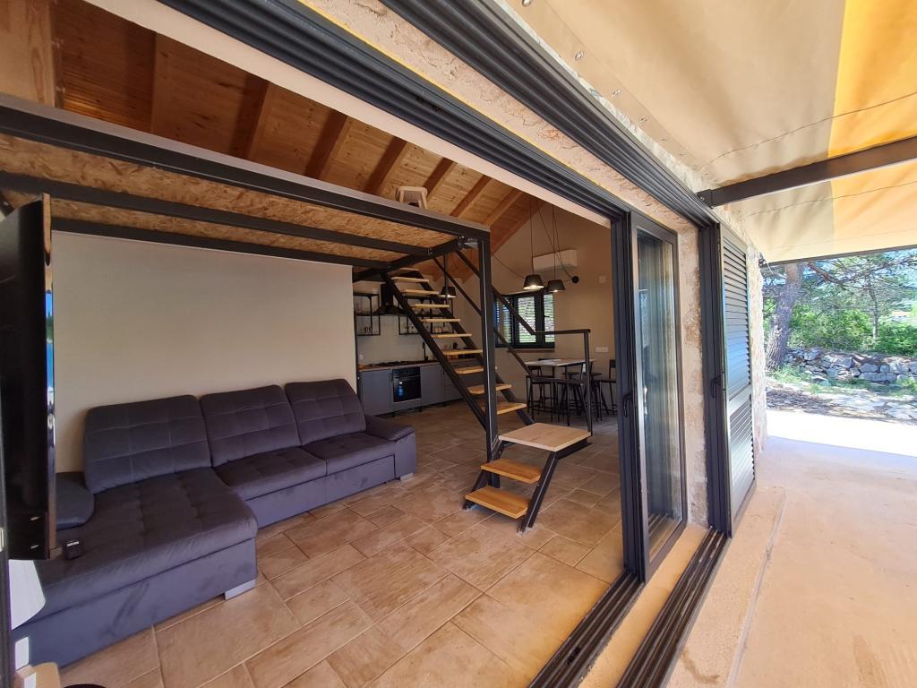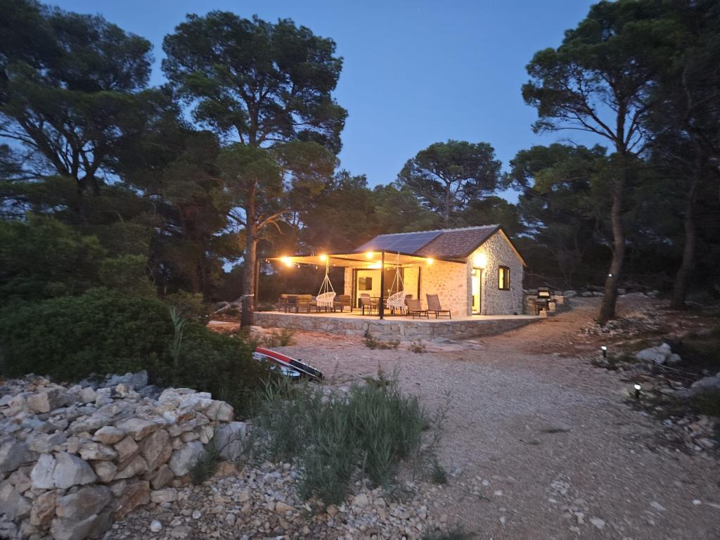 Zen Resort se nahaja na otočku Mali Vinik v zalivu Hramina v bližini središča Murterja, do katerega je mogoče priti z ladjo, vožnja traja 5 minut. Namestitev je sestavljena iz dveh stavb, kamnite hiše s površino 40 m2 in pomožne lesene (toplotno izolirane) "hišice na drevesu", s površino 9 m2, ki se uporablja kot spalnica za dve osebi (doplačilo - 60 evrov na noč). Lesena hiša je opremljena z elektriko 220 V, pametnim televizorjem, BT zvočnikom, ventilatorjem in klimatsko napravo. Glavna, kamnita hiša je sestavljena iz spalnice, ki se nahaja na galeriji s pametnim televizorjem, na katerem lahko spita 2 odrasli osebi. Dnevna soba ima raztegljiv kavč, ki se lahko uporablja kot postelja za dve osebi, opremljen z razsvetljavo, televizorjem, zvočno palico. Kopalnica je opremljena z WC-jem, umivalnikom in prostorno tuš kabino. Površina balkona/terase je 40 m2. Ribiška hiša je opremljena z dvema televizorjema, IPtv, klimatsko napravo, ogrevanjem/hlajenjem in brezžičnim internetom. Parkirišče je zagotovljeno in vključeno v ceno. Ribiška hiša ima svoj pomol za čolne.