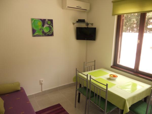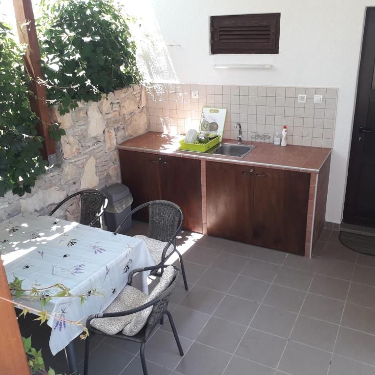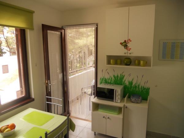 Zeleni apartma je za 4 do 5 oseb z dvema spalnicama, dnevno sobo, kuhinjo, kopalnico, teraso in balkonom. Apartma ima tudi balkon in teraso, kjer lahko gostje jedo na prostem v senci. Terasi obeh apartmajev sta pokriti. Oba apartmaja imata zasebno parkirišče. Modri apartma je za 4 osebe z eno spalnico, dnevno sobo, kuhinjo, kopalnico in teraso. Modri apartma ima tudi pomivalni stroj. Oba apartmaja imata pralni stroj in žar. Apartmaja sta moderna, nedavno prenovljena in stilsko opremljena. Večina pohištva je novega in posebej izdelanega za vsak apartma. Plaža je oddaljena 200 m in do nje se lahko sprehodite skozi borov gozd. V bližini ni prometne ceste. Trgovina je oddaljena približno 50 m, bližnja restavracija pa je 200 m od apartmaja. Drugi objekti na plaži vključujejo diskoteko, več kavarn in pekarno. Poleg Nečujma na Šolti priporočamo obisk Stomorske, Maslinice in številnih skritih zalivov.