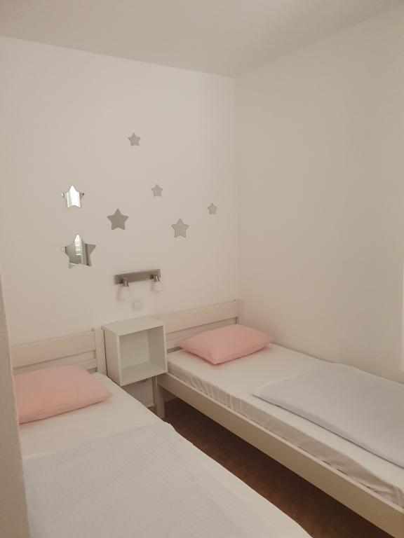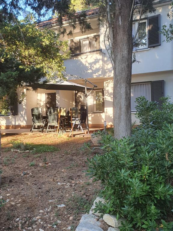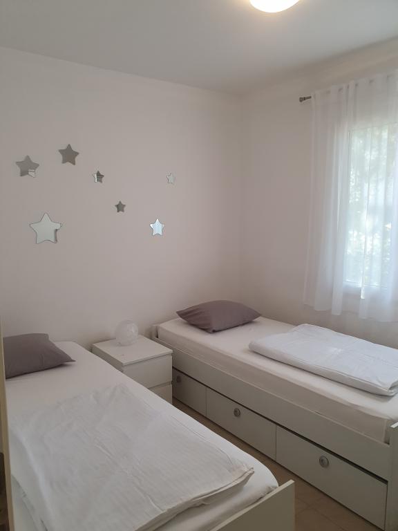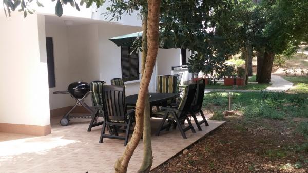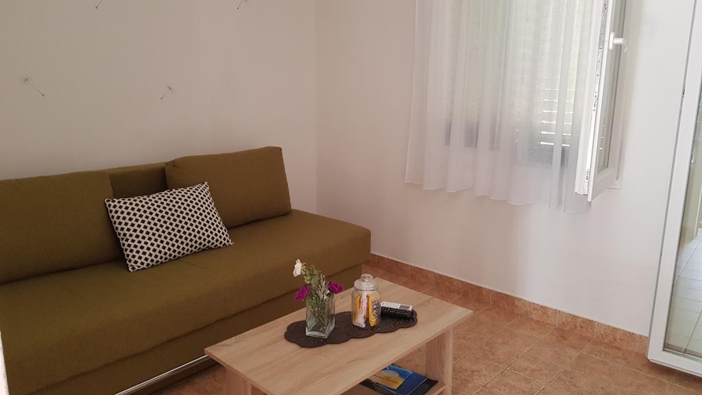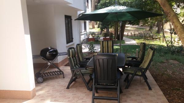 Popolnoma opremljeni in urejeni apartmaji za udobno bivanje do 6 oseb, ki se nahajajo v borovem gozdu. Apartmaji so oddaljeni 3 minute hoje od morja in čudovite plaže, do katere se pride skozi borov gozd. Apartmaji so sestavljeni iz dveh sob - ena z zakonsko posteljo in ena z dvema enojnima posteljama, dnevna soba z raztegljivim kavčem in LCD TV, jedilnica (večji apartma - nastal z adaptacijo dveh manjših apartmajev v eno veliko stanovanje 60m2), kopalnica, kompletna kuhinja z aparati kot so kuhalnik vode, kavni avtomat (pralni stroj in posoda v večjem apartmaju) in terasa, z možnostjo uporabe žara. Vsak naš apartma je opremljen s posteljnino, brisačami, kuhinjskimi pripomočki in aparati, ki so potrebni za vaše nemoteno bivanje. Celotno okolje (borov gozd, bližina plaže in morja, zaščitenost promenade s ceste) predstavlja idealno okolje za sprostitev in družinske počitnice z majhnimi otroki ali hišnim ljubljenčkom.