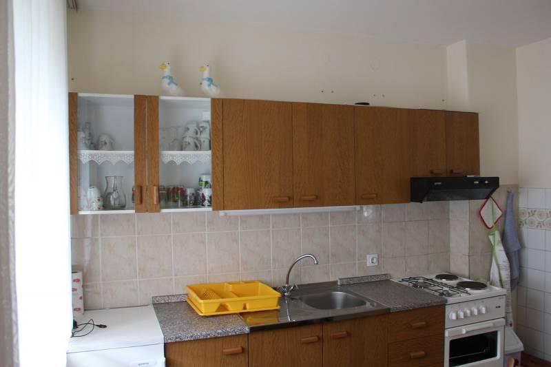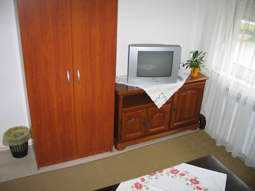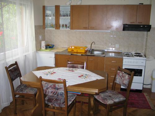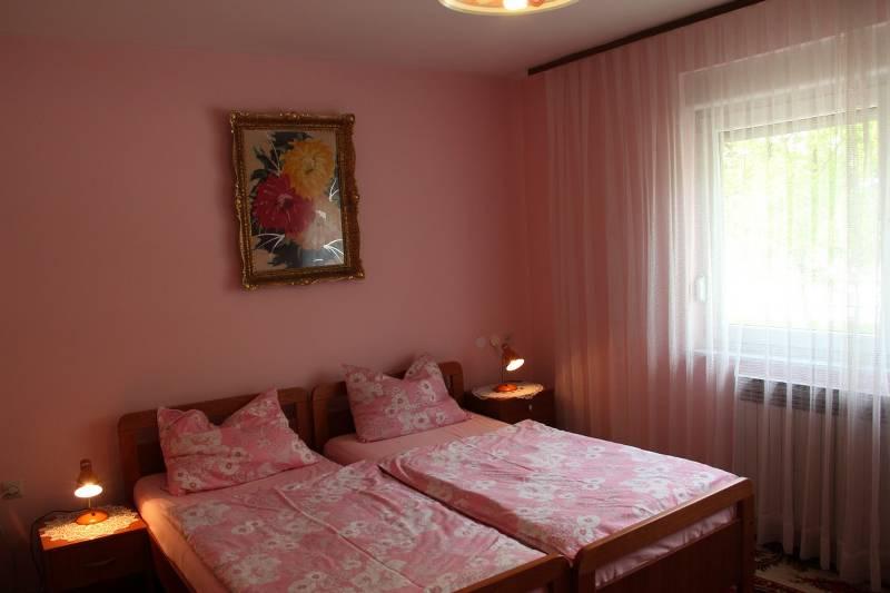 Površine 66m2 se nahaja v 1. nadstropju družinske hiše, ima dve spalnici po 2 postelji in dnevni prostor z dvema dodatnima ležiščema. Kopalnica je opremljena s kadjo, sušilcem za lase, bidejem in umivalnikom. Kuhinja je standardno opremljena s posodo za pripravo in strežbo hrane in pijače ter jedilnim priborom v ustreznih količinah, hladilnik, zamrzovalnik 10 L. Vsi prostori v apartmaju imajo ogrevanje, SatTV v obeh sobah. Parkirišče je zagotovljeno.
