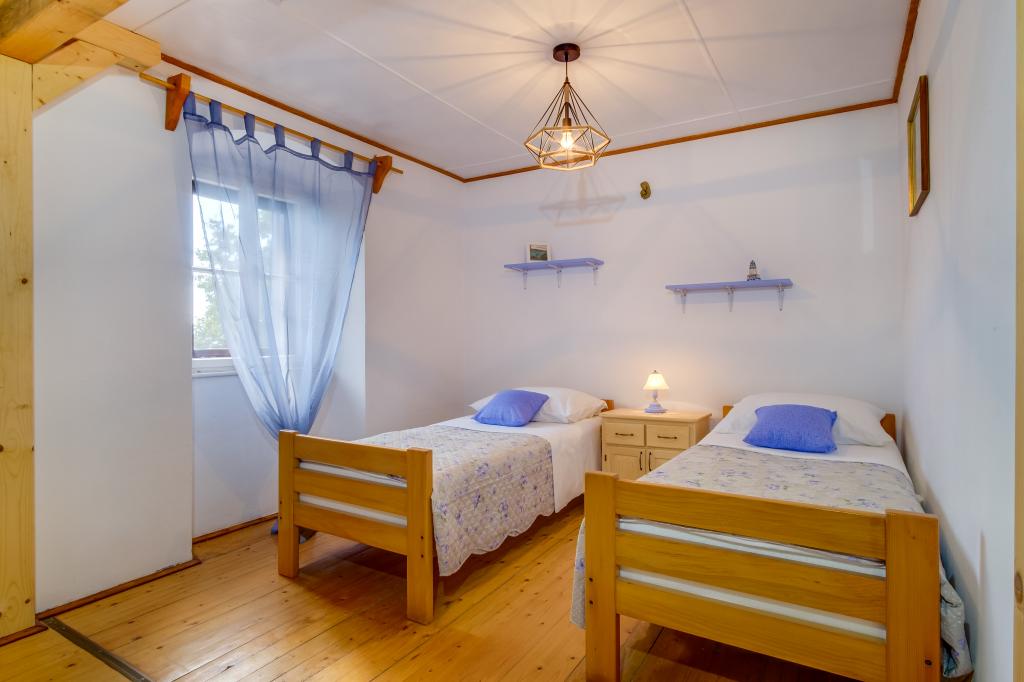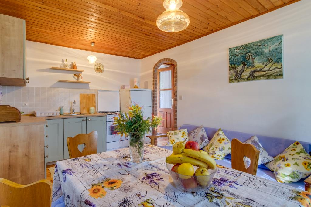 Dragi gostje, naše počitnice so nekoliko posebne. Smo osamljena hiša, obdana z naravnim zelenjem in oljkami. Pri nas imate mir, oddaljenost od glavne ceste je 1,5 km, od središča Nerezin pa 3 km. Kot gostje vam je na voljo prostorno parkirišče, širok prostor pred apartmajem (200 m2), kjer lahko vaši otroci brez skrbi preživljajo svoj čas. Na voljo imate tudi zunanji tuš, žar, mizo s klopjo in stoli v senci trstičja, kjer lahko v miru zajtrkujete zunaj. Pri nas lahko kupite naše domače olivno olje in likerje. Če imate radi nekoliko "divje" okolje, če vam ne motijo ovce, ki se zvečer sprehajajo pred apartmajem in čakajo, da jim vržete kos kruha ali zelenjave, če vam ne motijo mačke, ki ležijo na okoliških zidovih, če imate radi široke odprte prostore, potem je to pravi kraj za vas. Tukaj živi samo naša družina in potrudili se bomo, da vam svetujemo, kje so najlepše plaže in restavracije, da bo vaše bivanje čim lepše in prijetnejše.