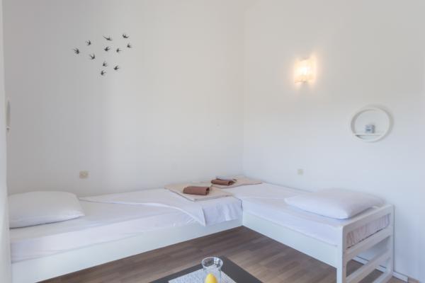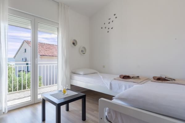 APARTMA PAŠMAN - VAŠE IDEALNE POČITNICE V SEZONI 2026 Dobrodošli v Neviđane, otok Pašman - enem tistih redkih krajev, kjer mir, čisto morje in pristno mediteransko vzdušje še vedno živijo vsak dan. Popolna destinacija za družine, pare in prijatelje, ki iščejo sprostitev, varnost in kakovostno namestitev, daleč od množičnega turizma. Naš moderno opremljen apartma se nahaja le 50 metrov od morja, ob peščenih in prodnatih plažah, idealnih za otroke, in brezskrbno uživanje za odrasle. Namestitev vključuje 2 spalnici, veliko dnevno sobo z dodatnim ležiščem, popolnoma opremljeno kuhinjo, kopalnico, teraso in balkon ter zasebno parkirišče. Če je do 6 oseb, cena vključuje tretjo spalnico z lastno kopalnico (ensuite) in teraso. Hišni ljubljenčki so dobrodošli brez doplačila. Trajektno pristanišče je oddaljeno le 10 km, odlične povezave in mirno okolje. Pašman - preprostost, mir in občutek prihoda domov.