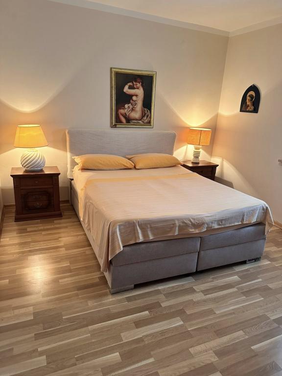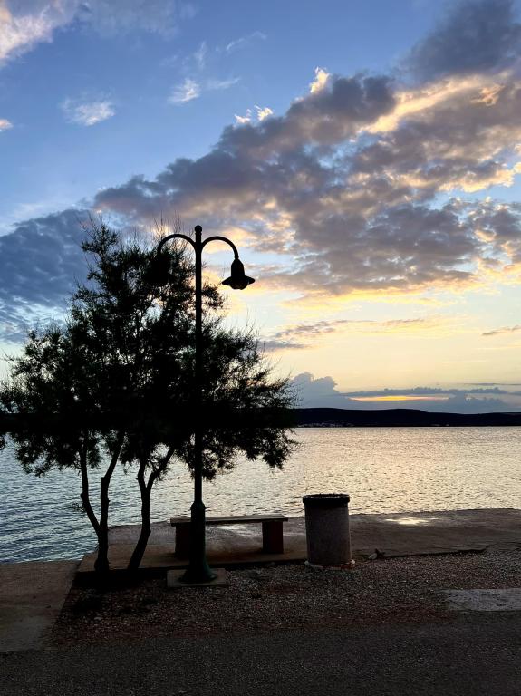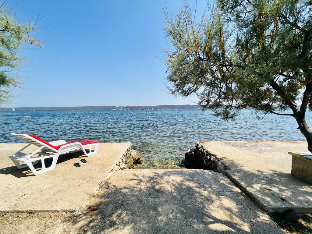 Sodoben apartma v vili, prva vrsta do morja, za miren in prijeten družinski dopust stran od mestnega stresa. Prostorno stanovanje 85 kvadratnih metrov s teraso, dvoriščem z žarom, ločeno sobo s pralnim strojem. 5 m od morja in 50 m od peščene plaže idealne za otroke.