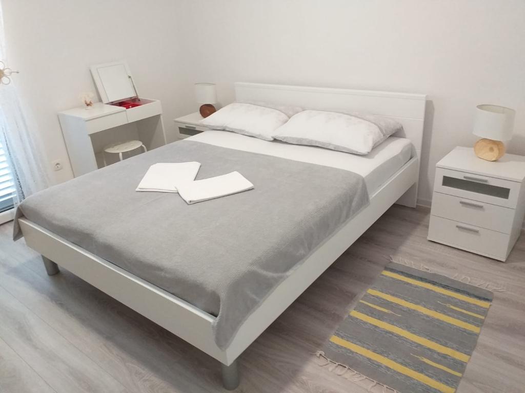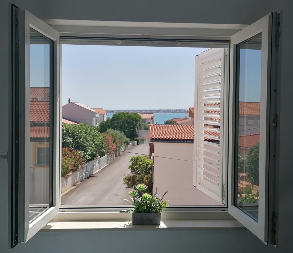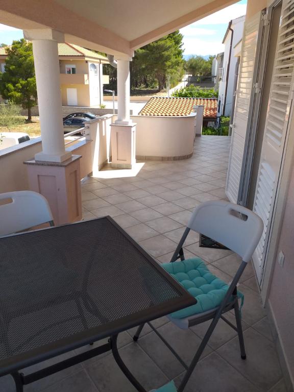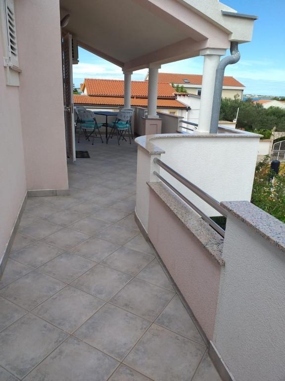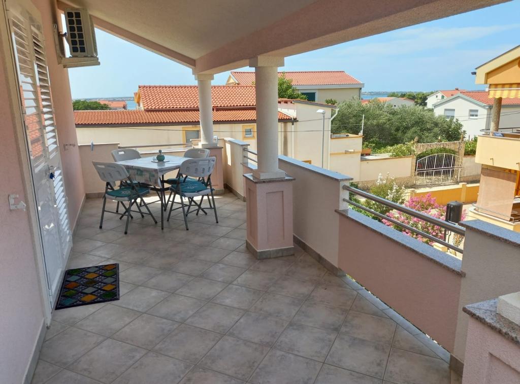 Apartmaji v Vrsi Mulo (4km Nin, 20km Zadar), moderno opremljeni s prostorno teraso, pogledom na morje, 200m do plaže Mulo. - moderno opremljen apartma (40m2 + terasa 15m2) z 1 spalnico - ločen vhod - zasebno parkirišče - prostorna terasa s pogledom na dvorišče, morje in gore - izhod na teraso iz dnevne sobe in spalnice, varnostna ograja na stopnicah - apartma popolnoma opremljen (osnovna + klimatska naprava, wifi, satelitska TV, pomivalni stroj, pralni stroj, likalnik, sušilnik za lase, mreža proti komarjem, štedilnik, aparat za kavo, otroška potovalna posteljica, posteljnina, brisače, čistila) - paviljon z žarom in zunanjim tušem za skupno uporabo