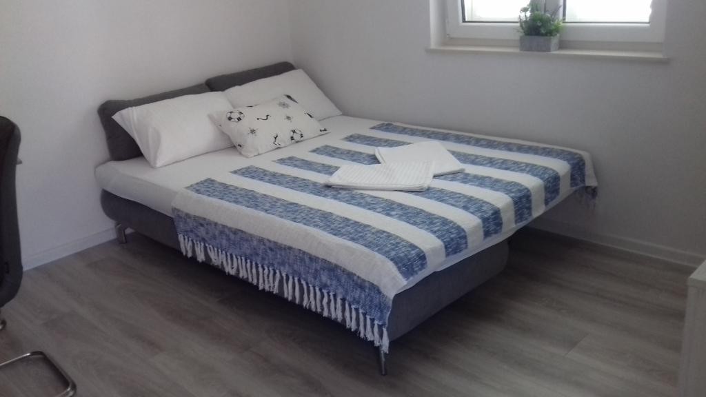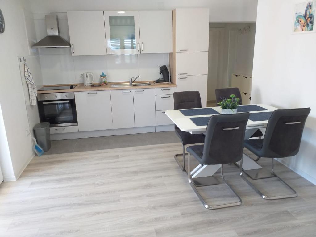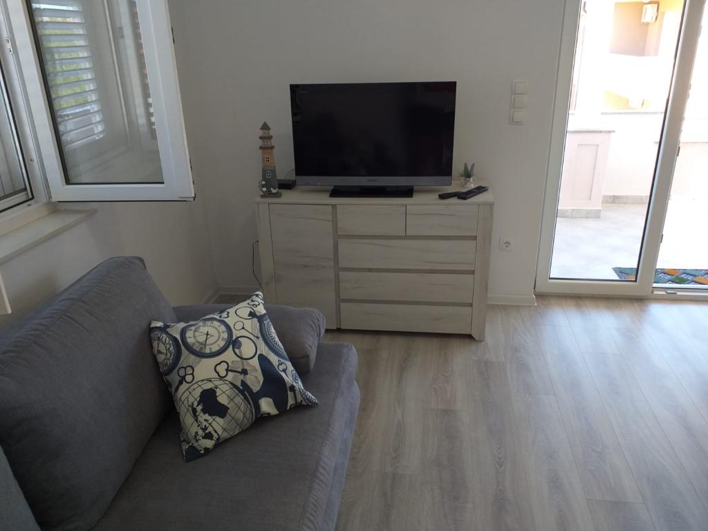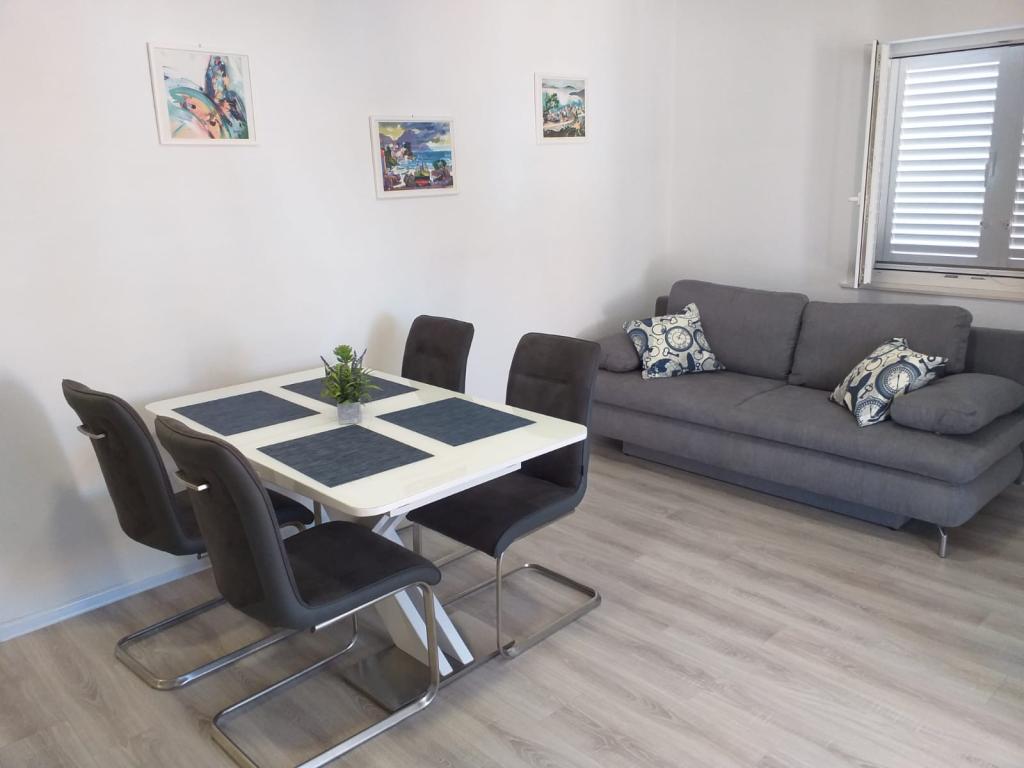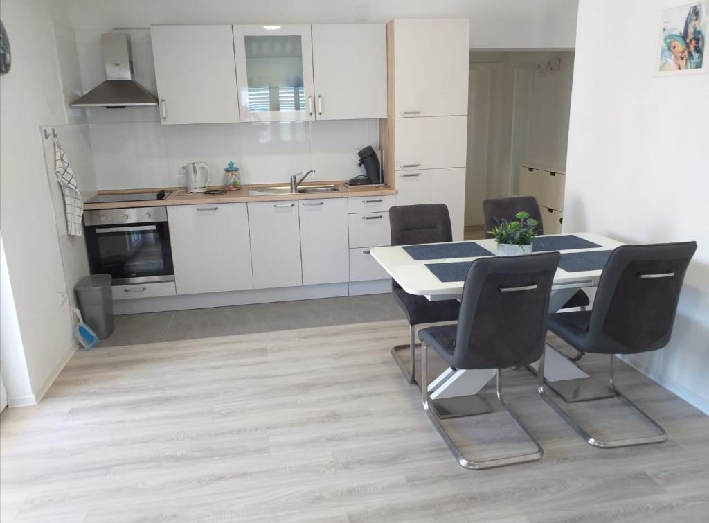 Apartmaji v Vrsi Mulo (4km Nin, 20km Zadar), moderno opremljeni s prostorno teraso, pogledom na morje, 200m do plaže Mulo. - moderno opremljen apartma (40m2 + terasa 15m2) z 1 spalnico - ločen vhod - zasebno parkirišče - prostorna terasa s pogledom na dvorišče, morje in gore - izhod na teraso iz dnevne sobe in spalnice, varnostna ograja na stopnicah - apartma popolnoma opremljen (osnovna + klimatska naprava, wifi, satelitska TV, pomivalni stroj, pralni stroj, likalnik, sušilnik za lase, mreža proti komarjem, štedilnik, aparat za kavo, otroška potovalna posteljica, posteljnina, brisače, čistila) - paviljon z žarom in zunanjim tušem za skupno uporabo