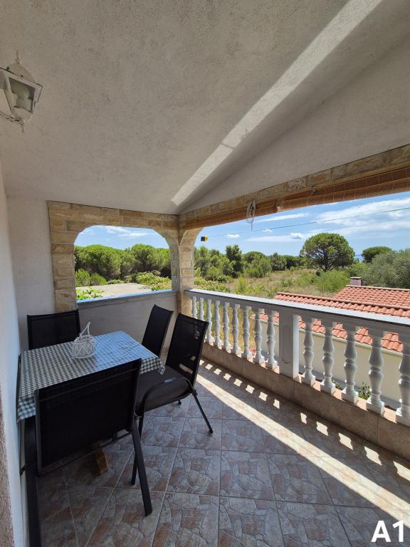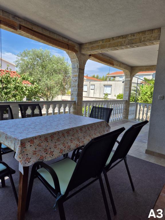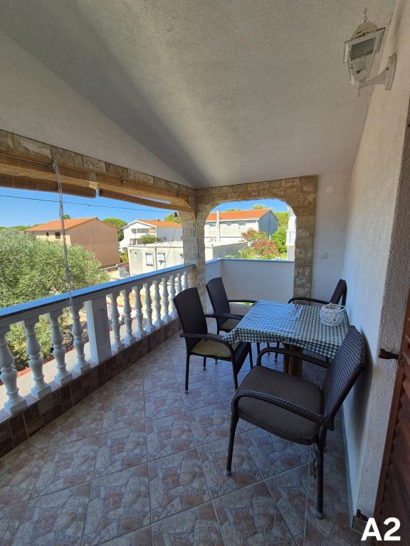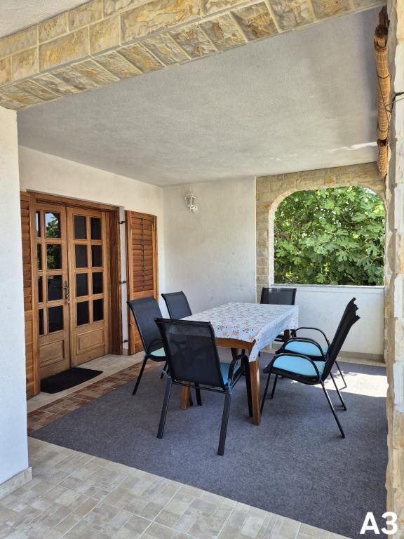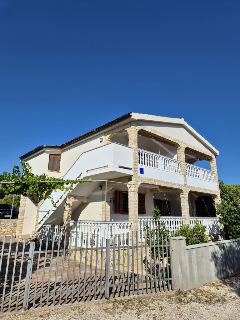 Apartmaji se nahajajo v mirnem delu (Bilotinjak 1), v bližini mesta Nin. Apartmaji so na novo obnovljeni. Vsak apartma ima kopalnico, spalnico z zakonsko posteljo, kuhinjo in dodatno ležišče za dve osebi. Apartma ima teraso s pogledom na jugozahod proti morju. Oba apartmaja imata varovano parkirišče v dvorišču. Na voljo so žar in zunanji tuš. Prostorna, naravna peščena plaža, oddaljena od doma, tristo metrov, je primerna za otroke.