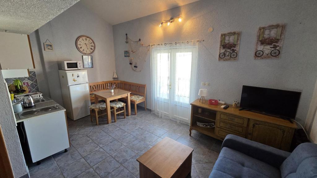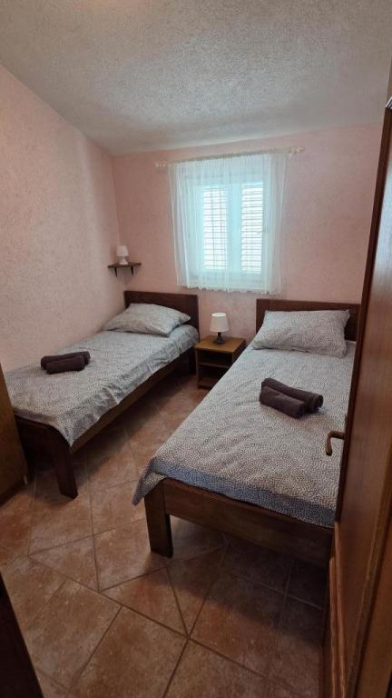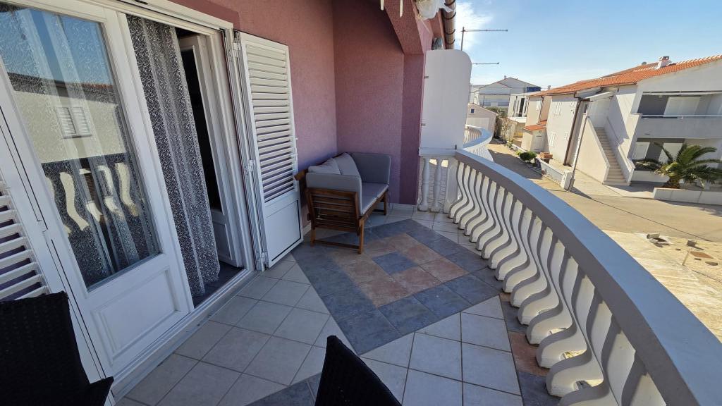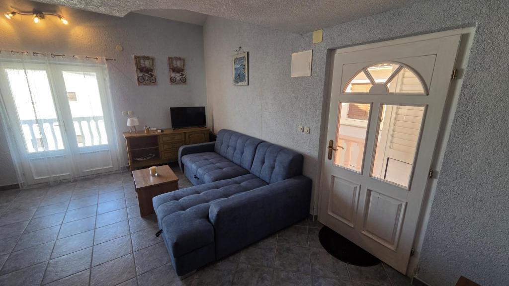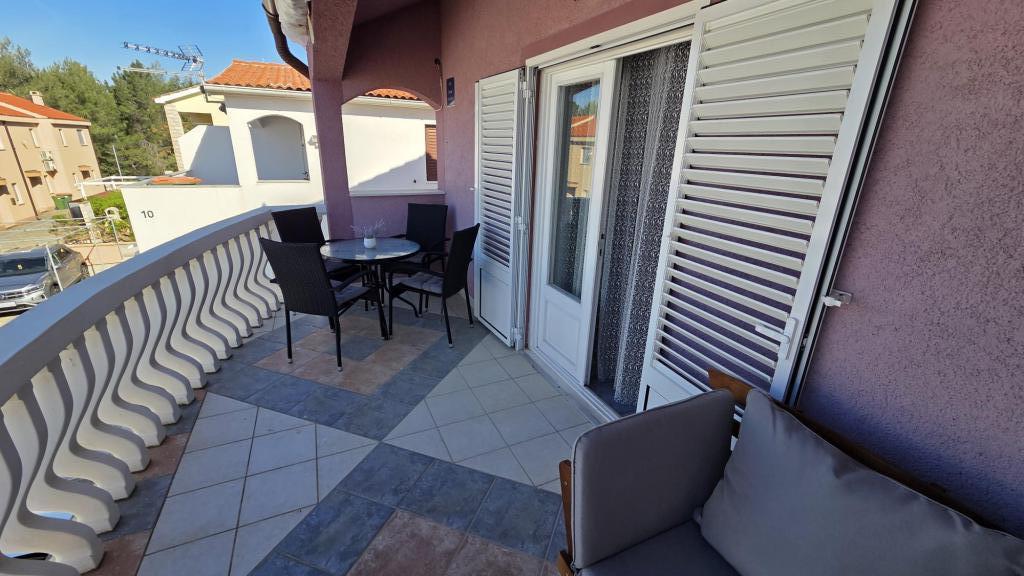 Apartma je sestavljen iz dveh sob, ene z zakonsko posteljo, druge z dvema ločenima posteljama, kopalnice, dnevne sobe s kuhinjo in velike terase. Parkirišče za avto ob apartmaju, žar, klimatska naprava, wifi. Oddaljenost od morja 5 minut lahkega sprehoda, 10 minut hoje do centra mesta in trgovin. V bližini je čudovit borov gozd. Mirno in tiho okolje.