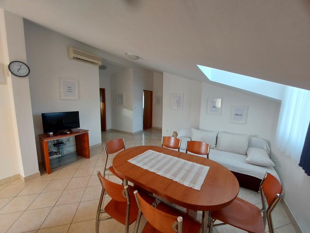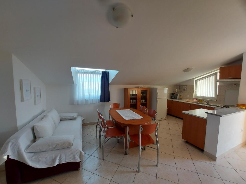Popolnoma opremljeno in klimatizirano stanovanje v mirnem obrobju vasi Vrsi Zukve, v bližini mesta Nin in zdravilnim blatom Nin. Zukve se nahaja 15 kilometrov od mesta Zadar. Betonske plaže 60 metrov peska in gramoza 300 metrov. Gostje imajo dostop do interneta, žar in zunanji tuš. Parkirišče je zagotovljeno. Stanovanje ima tri spalnice, kopalnico in wc, kuhinjo, jedilnico in dnevno sobo in teraso 20 kvadratnih metrov. Terasa, kjer je to primerno, se lahko izpolni pokrito tendo.