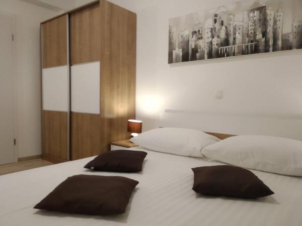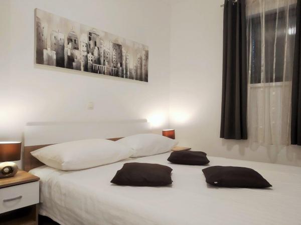 Udobni in moderno opremljeni apartmaji v mirni ulici, obdani z velikim dvoriščem z veliko prostora za parkiranje in igro. Na dvorišču je skupni žar in prostor za sedenje. Objekt se nahaja v bližini znane Kraljičine plaže in vseh pomembnih objektov. Apartmaje smo opremili z veliko pozornosti in ljubezni, tako da imajo naši gostje vse potrebno udobje med bivanjem pri nas.