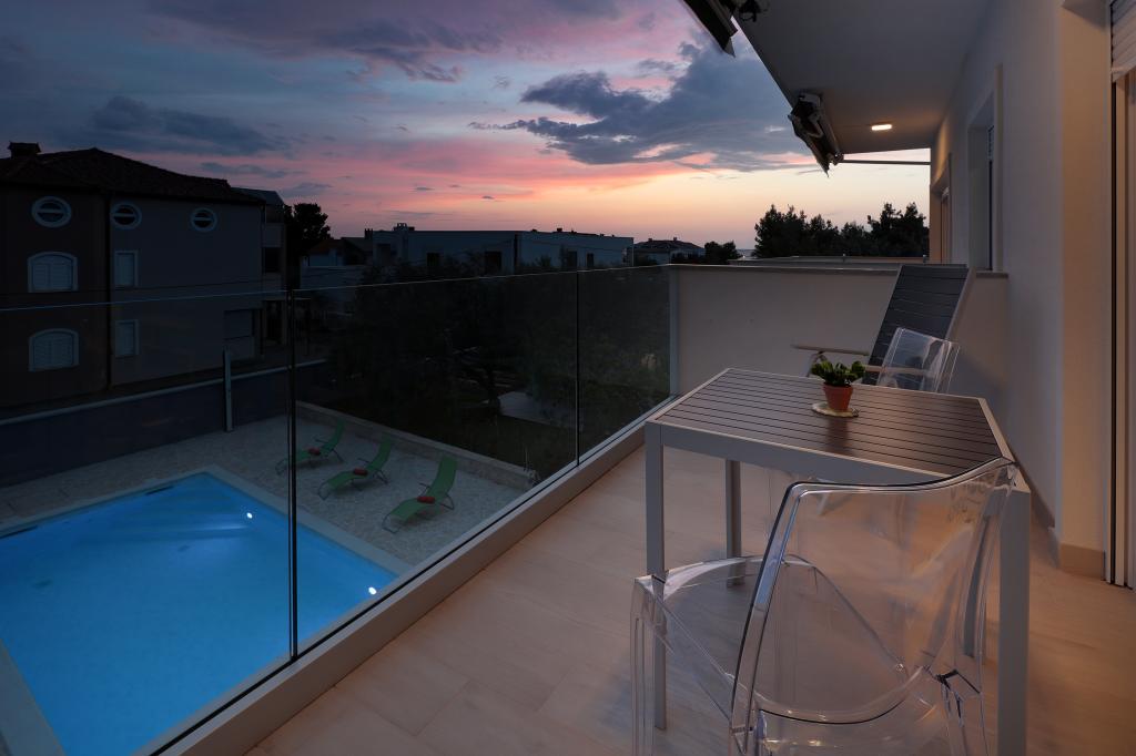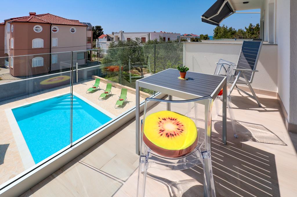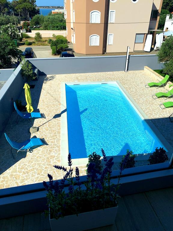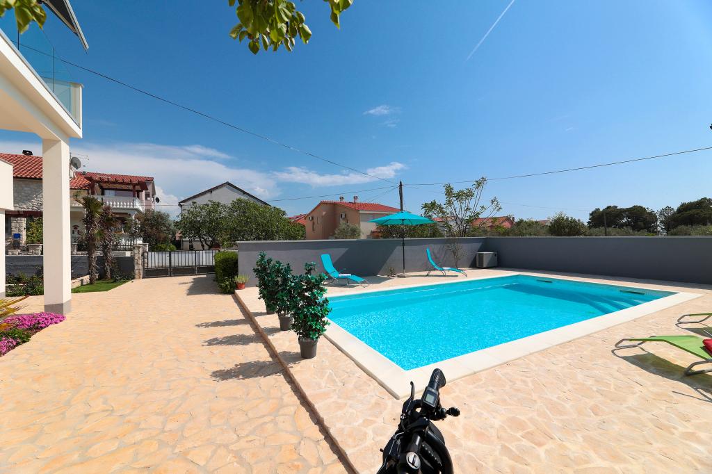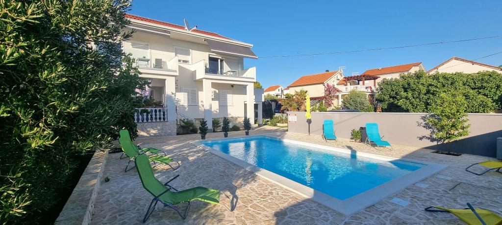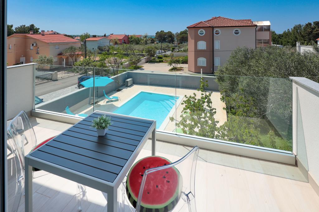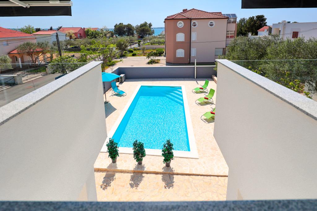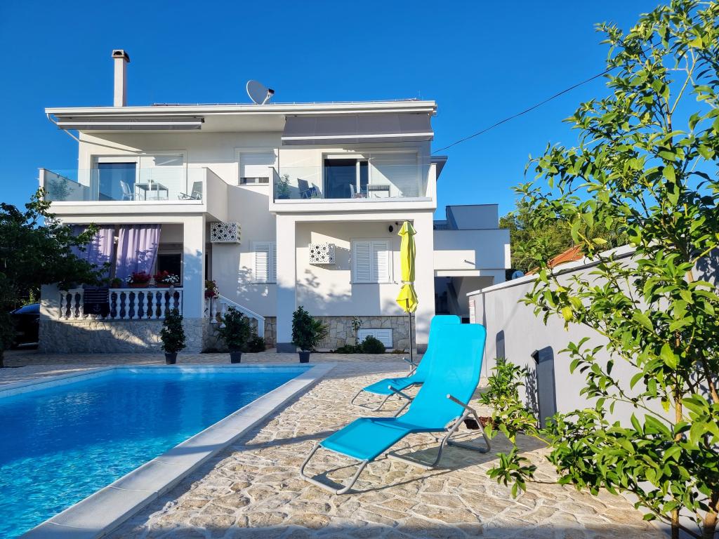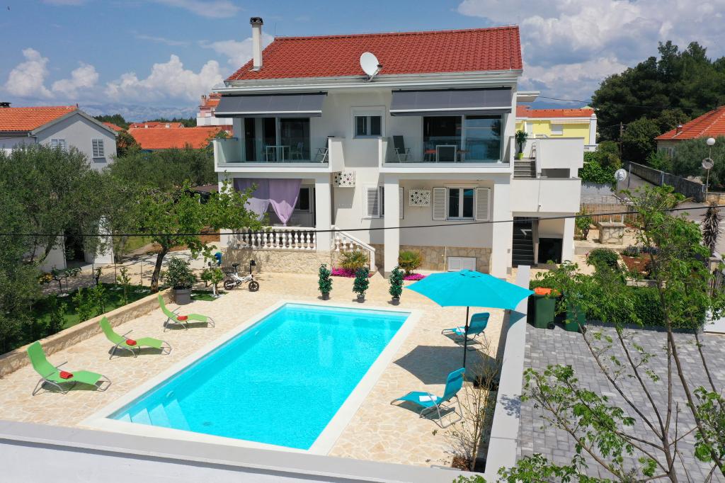 Naša hiša se nahaja na zelo lepem in zelo mirnem območju v slikovitem mestecu Vrsi. Čudovita pokrajina, lepa narava, zanimiva kultura in zdrava klima so značilnosti, ki nas ločijo od drugih krajev. Glavna plaža je zelo blizu naše hiše in je dosegljiva s kratkim sprehodom (80 metrov ali 2 minuti hoje). Hiša ima dve sodobno opremljeni stanovanji zgrajeni leta 2019. Večji apartma "Alan 3" ima 4 zvezdice in je idealen za velike družine do 6 oseb, manjši apartma "Alan 2" s 3 zvezdicami pa je namenjen družinam z največ dvema otrokoma ali pa lahko postane romantično zatočišče za pare v ljubezen. Vsak apartma ima balkon s pogledom na čudovit zaliv in velik ogrevan bazen, ki ga na eni strani obdaja lepo urejen vrt s cvetjem in agrumi, na drugi pa manjši nasad oljk, ki v vročih poletnih dneh nudi prijetno senco. Terasa s sedežno garnituro zagotavlja sproščujoče trenutke podnevi ali poletnih večerih.