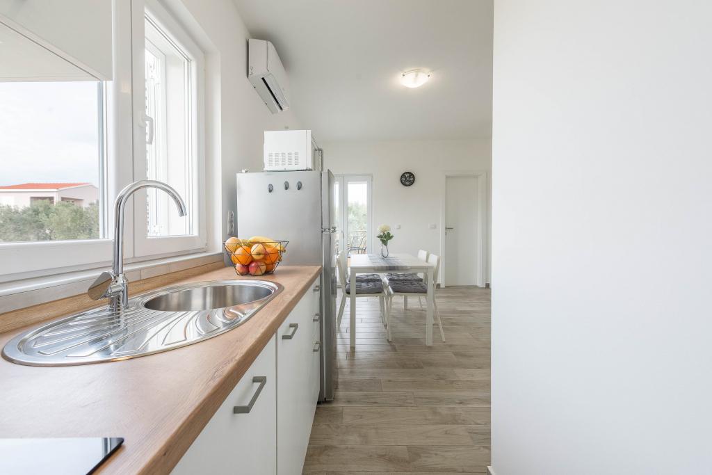 Apartmaji so zelo lepo urejeni, vse je novo in čisto, lastnica pa izjemno prijazna in ustrežljiva. Najbližja plaža z dolgo promenado je oddaljena 5 minut. hoje, in na razdalji 10 min. z avtom je tudi lepa peščena plaža, idealna za družine z otroki.
