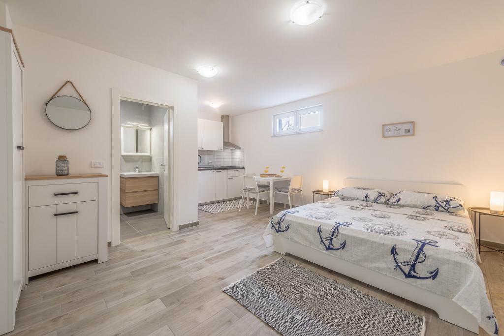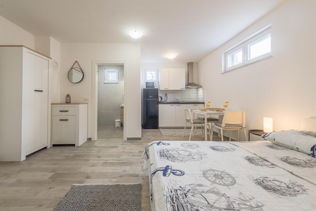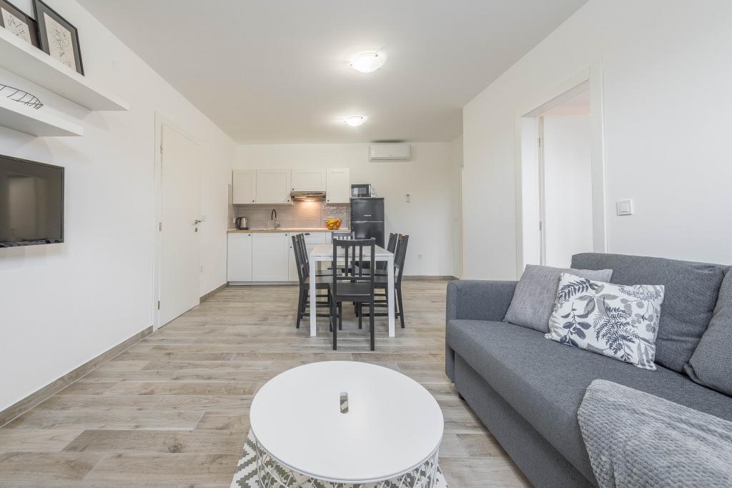 Odlična izkušnja. Apartma je opremljen z modernim pohištvom in kuhinjo. Vse je čisto in urejeno. Cena vključuje uporabo klimatske naprave. Čeprav večinoma ni potrebna. Vrsi je miren kraj in med bivanjem ni bilo gneče.